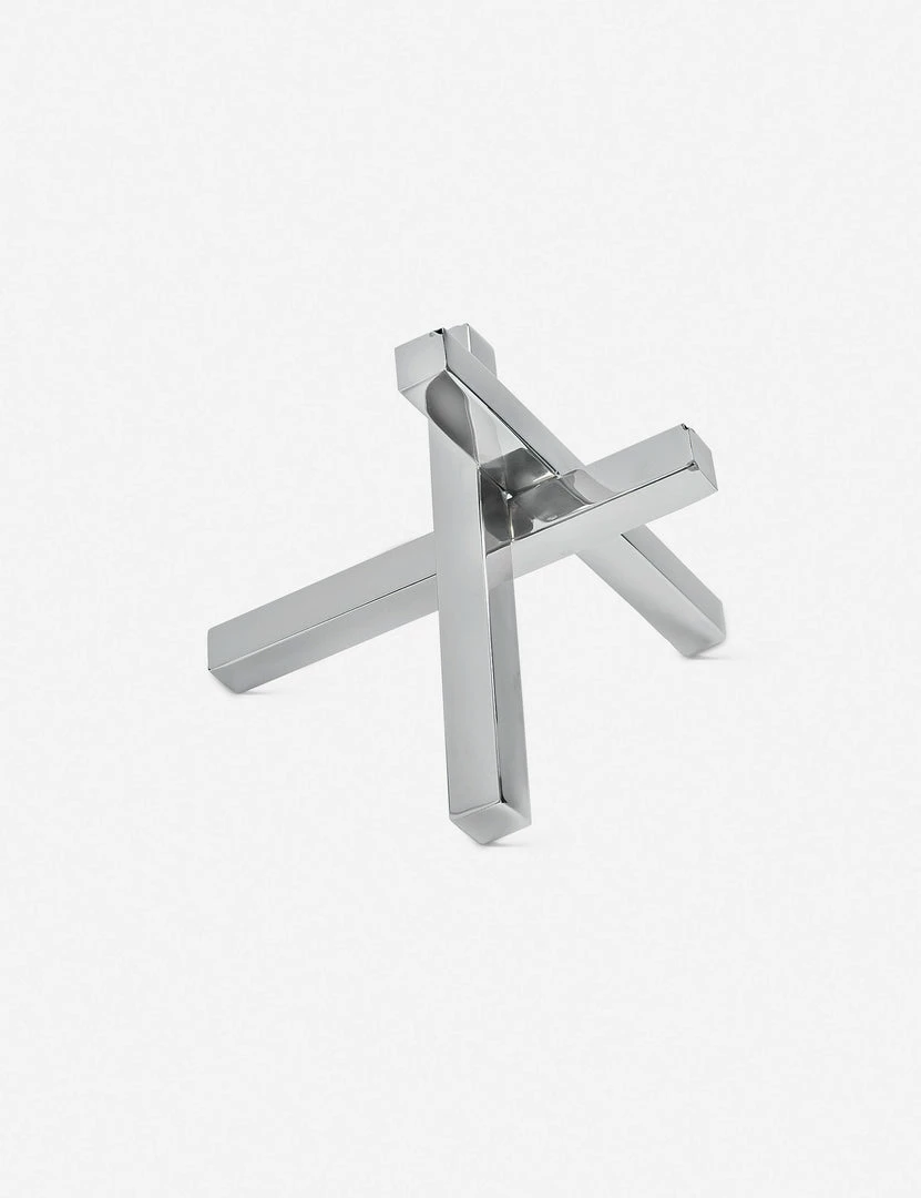 There is an elegant sense of balance to this sculpture object, with its three beams intersecting at its summit. Made from steel, its polished nickel finish has a chic mirrored effect to make it a very modern accent. Style it atop a side table, on beside your favorite books on a shelf, or even on your workstation.
