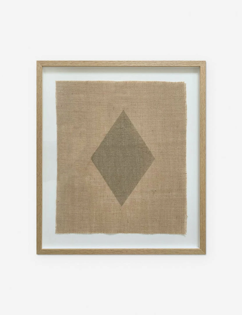Artisan appeal and grounded tones create elemental impact for this floating framed wall art, which features a crisp diamond set on a woven burlap piece. We love this unique wall decor element for a richly collected space that layers organic textures into a modern aesthetic.