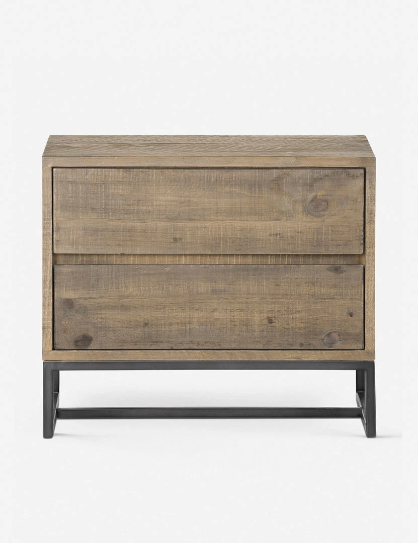 For bedrooms with a touch of rustic style, this nightstand fits right in. The unique grain and knots in the solid pine add endless character, and the metal base and handle-less design keeps the look totally updated.
