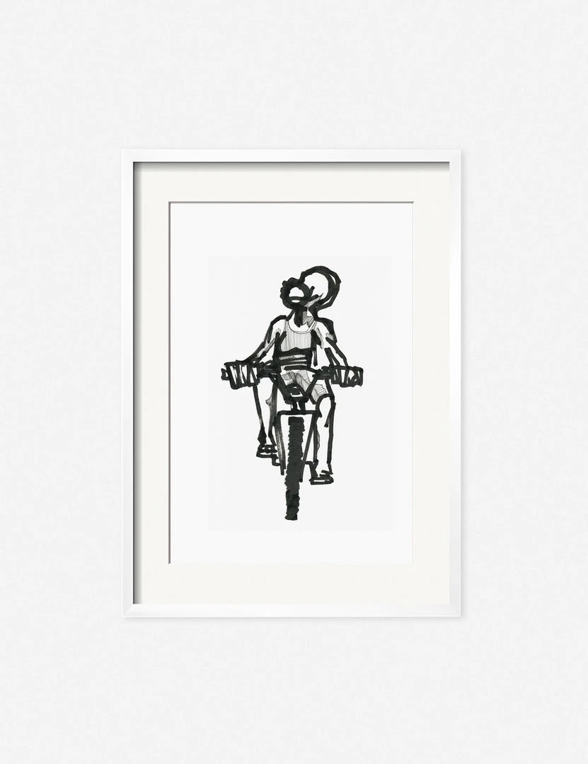 Adrian Brandon is a Brooklyn-based artist who works to share a broader understanding of the Black experience, with the hope for progress rooted in love and unity. In this exclusive wall artwork collection, Brandon captures expressions of closeness, family, and joy with an abstract yet vibrant fidelity. A biker takes in his surroundings in this wall art print. Bold lines and delicate shading create a sense of depth and texture that brings this elemental scene to life