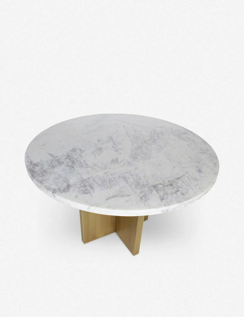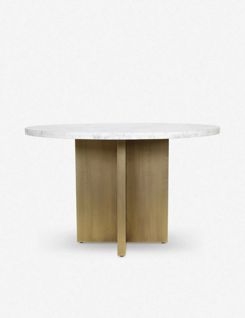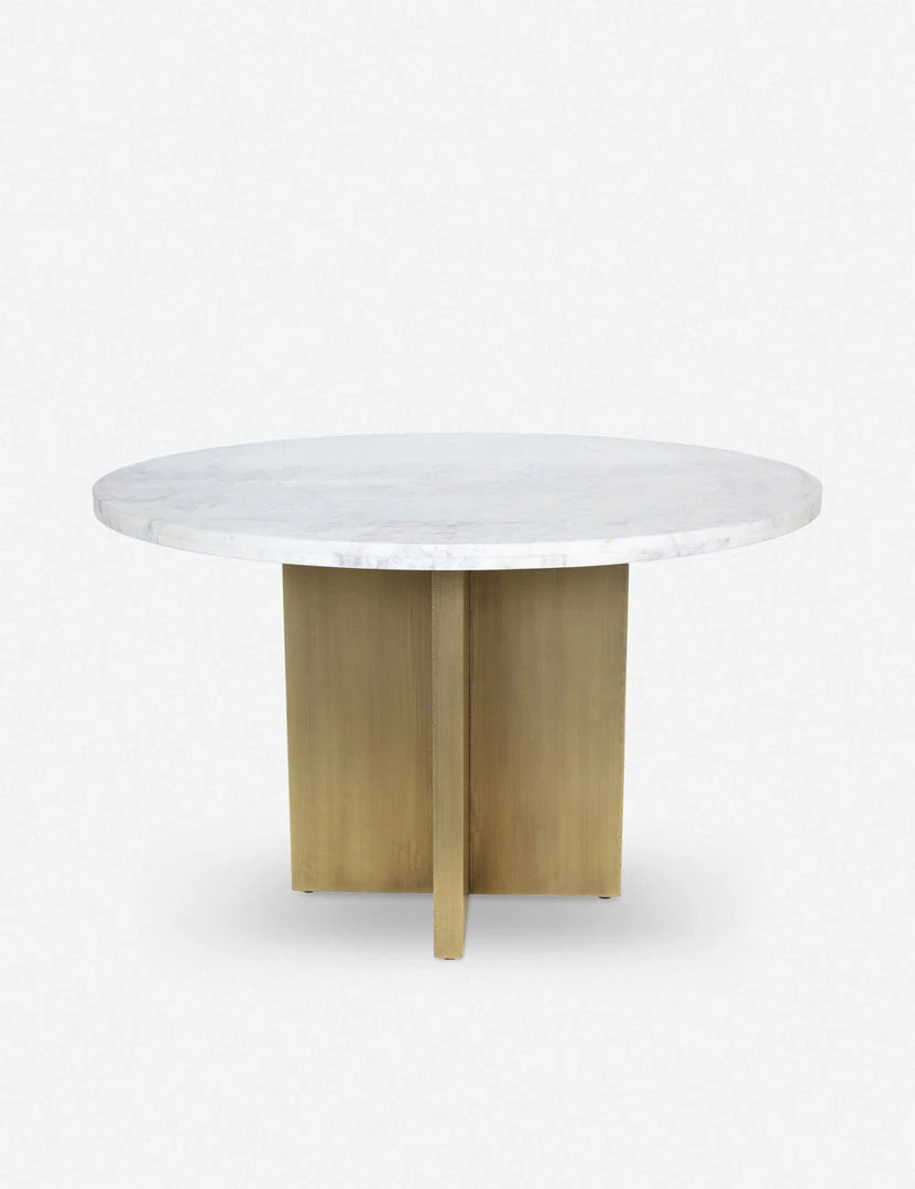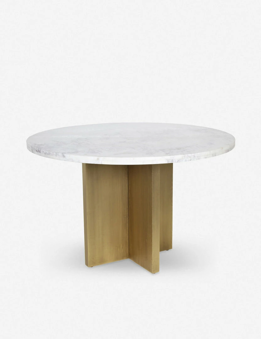 Luxe meets modern in this timeless dining table. The brass finish of the angular base complements the sleek marble top offering a polished edge that invites refinement. This marble table is a great way to bring a touch of glamour to small space dining with room for six.