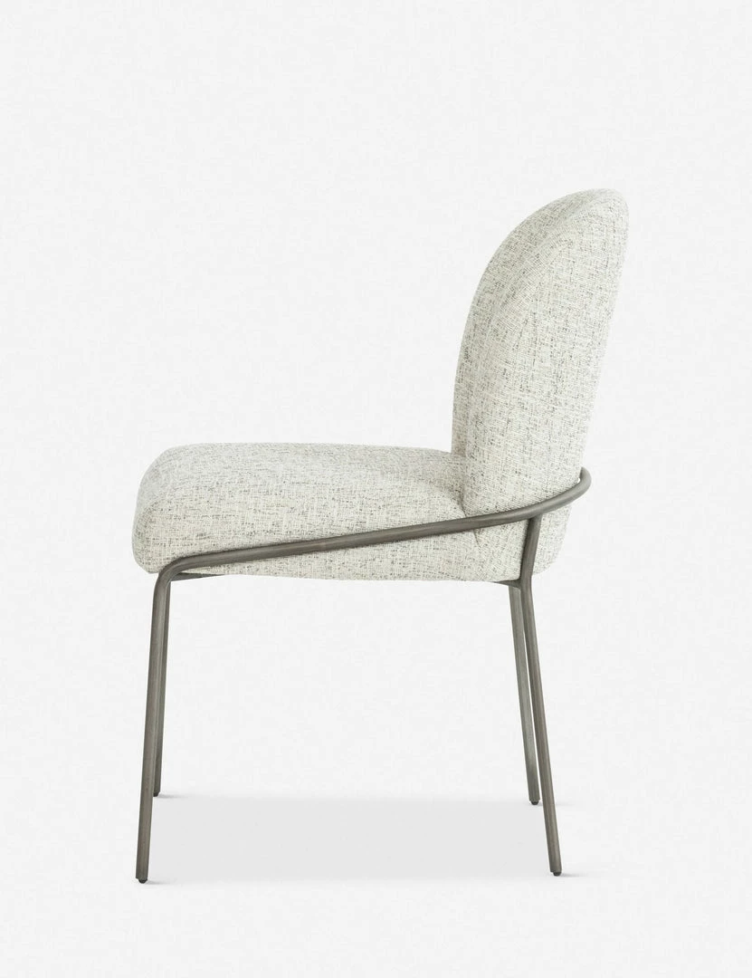 Ideal for the luxe-minimalist, this dining chair features an armless design with an elegant, two-piece upholstered seat, resting effortlessly in a tubular metal frame.