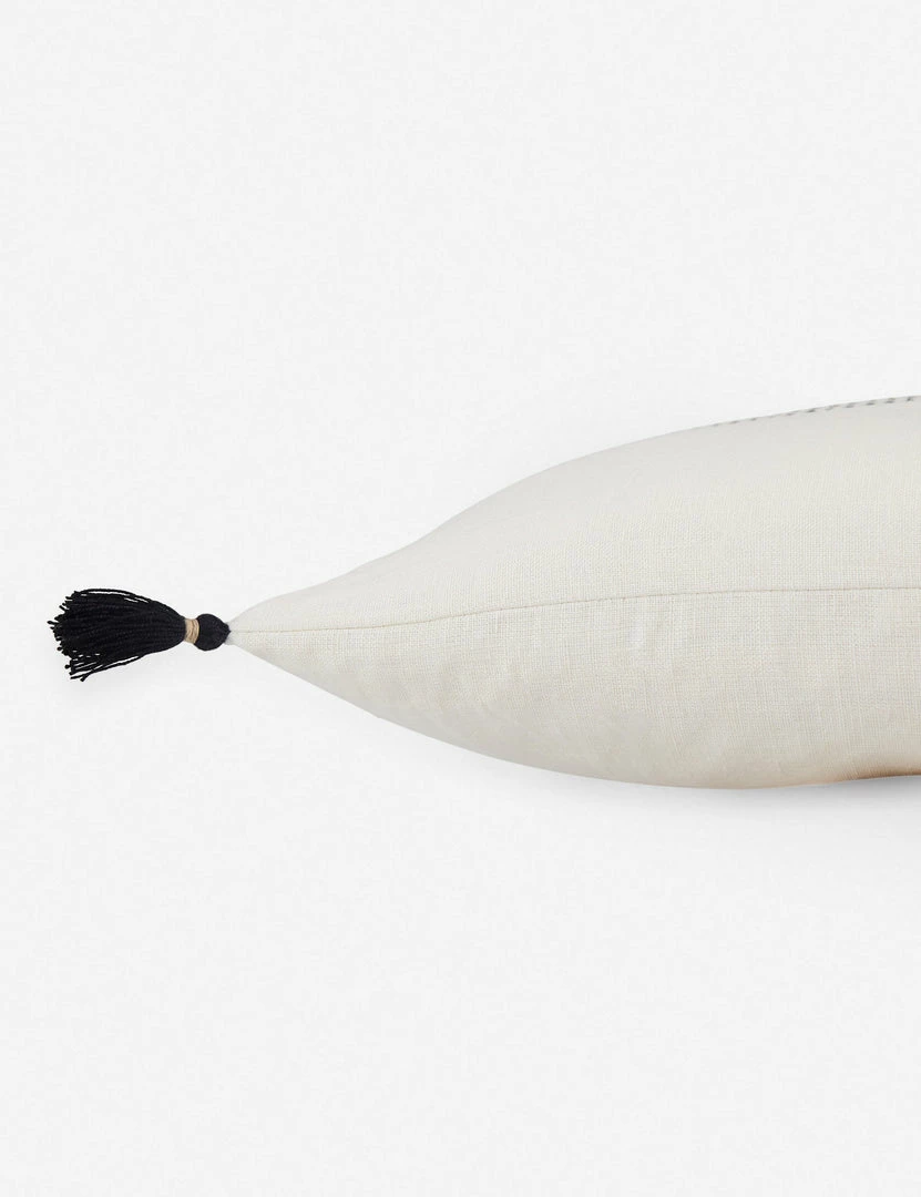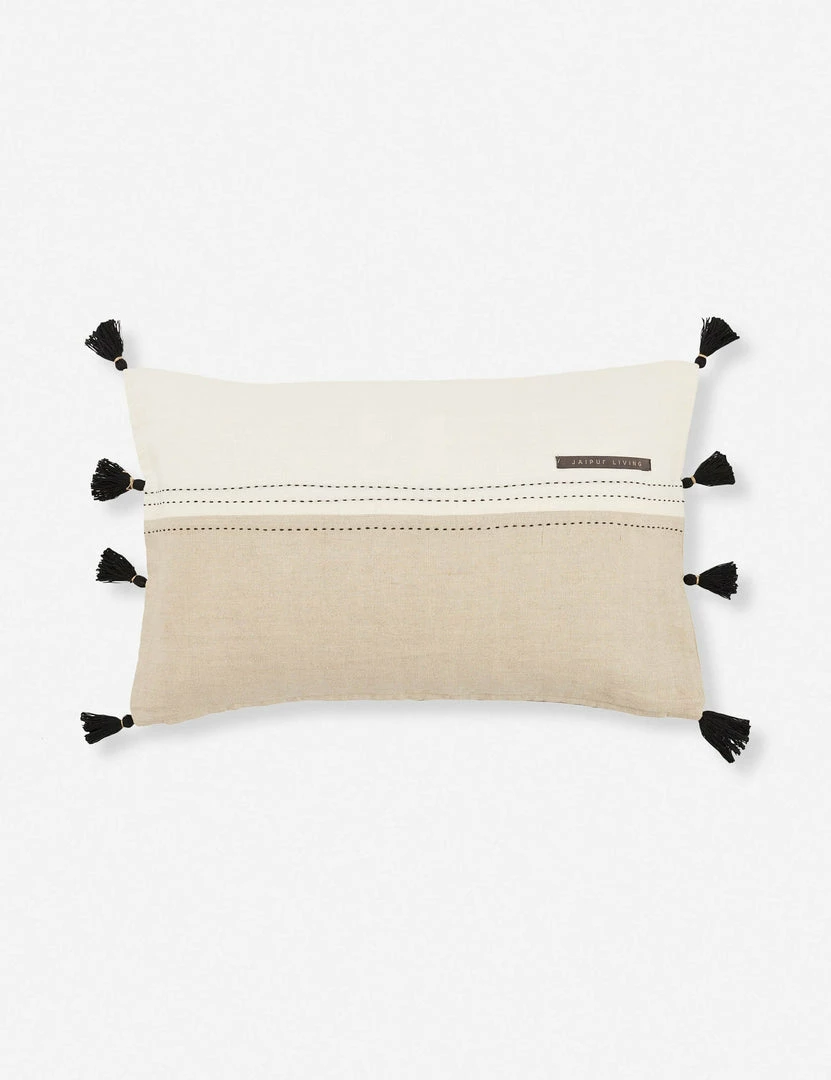 Woven linen offers a fresh touch of sophistication in an understated two-tone design in this plush throw pillow. The tasseled corners and black accent stitching offer a subtle note of contrast that elevates this decorative pillow with a chic style for your decor.