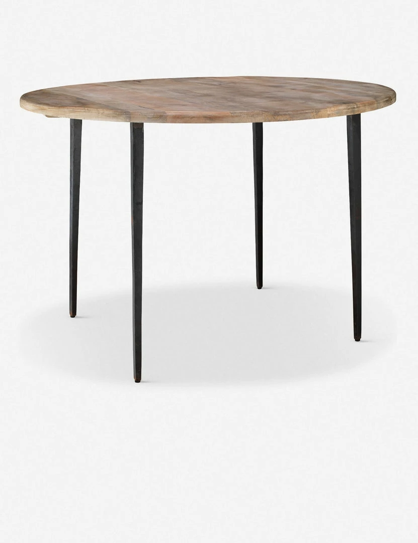 Your industrial farmhouse style just isn’t complete without this round dining table. The hand-worked wood tabletop adds plenty of craftsman appeal, while hammered antique legs bring a little modern contrast.