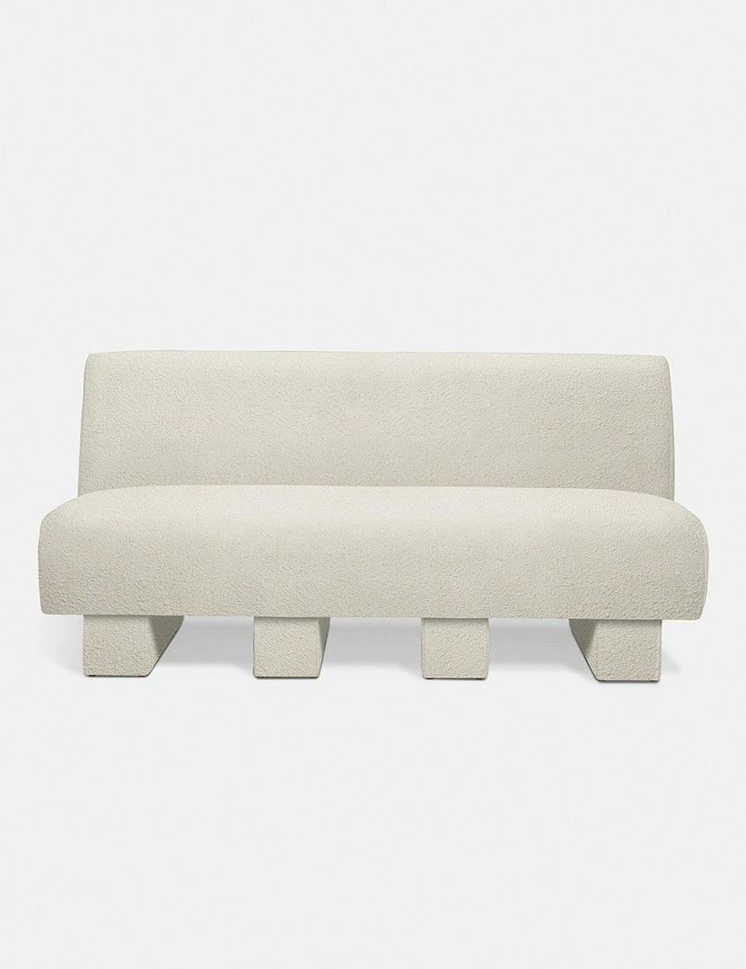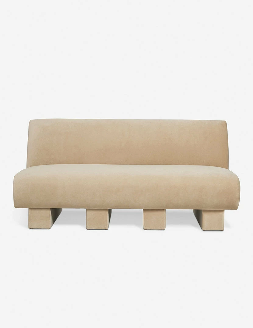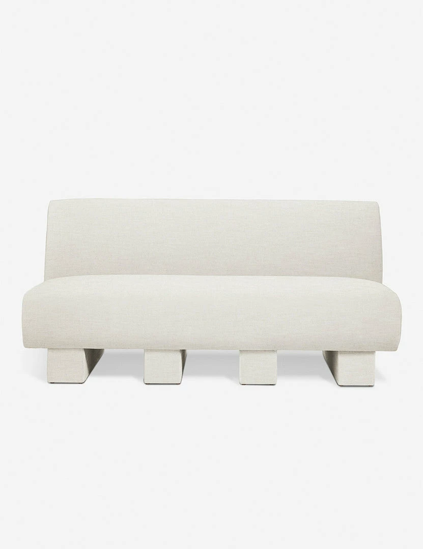 Add polish to your space with this sofa featuring an armless, streamlined design for the ultimate in comfort and style. Upholstered beam legs add an artful detail and give this living room sofa a subtle, airy feel. This piece is from our exclusive Sarah Sherman Samuel collaboration and features all the trademarks of her warm, edited style.