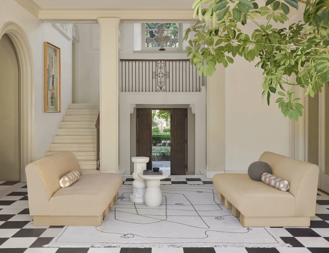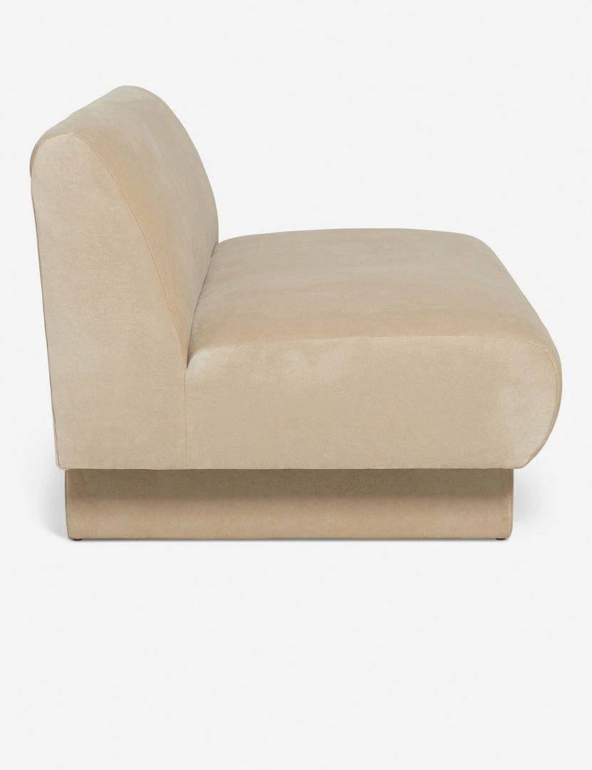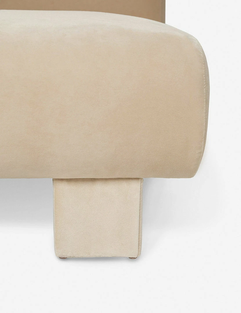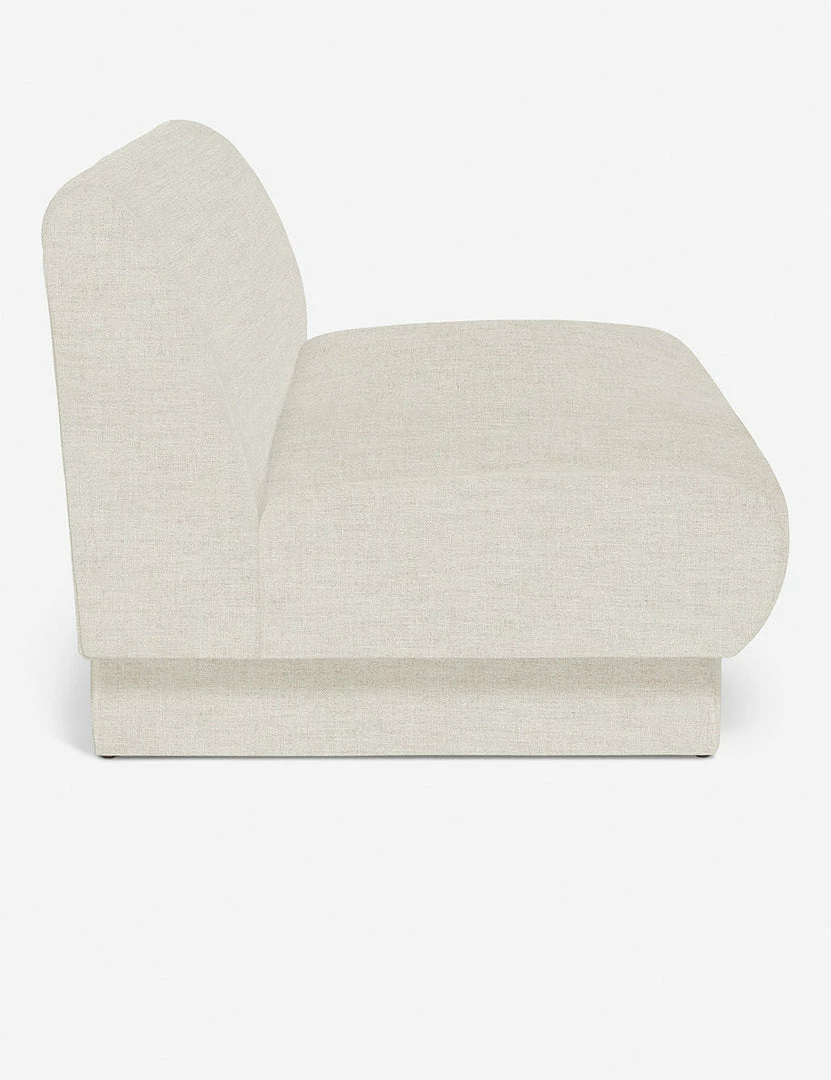 Add polish to your space with this sofa featuring an armless, streamlined design for the ultimate in comfort and style. Upholstered beam legs add an artful detail and give this living room sofa a subtle, airy feel. This piece is from our exclusive Sarah Sherman Samuel collaboration and features all the trademarks of her warm, edited style.
