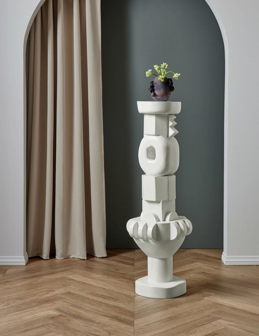 An artful, sculptural accent, this pedestal offers function and form. Use as a display for a decorative accent or the short size can even be used as a side table to rest your drink on. We love them layered together as an artful vignette. This piece is from our exclusive Sarah Sherman Samuel collaboration and is a replica of a piece Sarah handcrafted from paper mache in her own home.