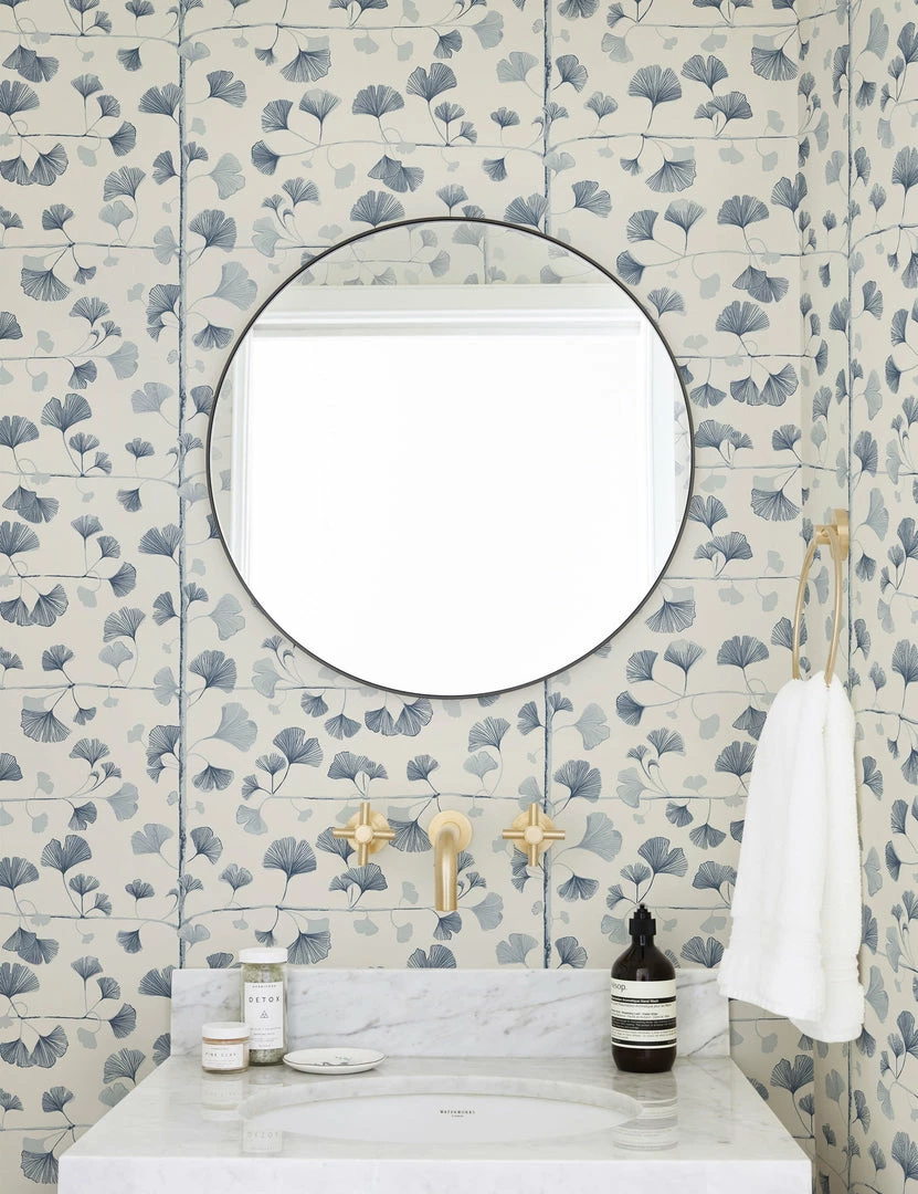 With its almost century-old legacy of inspired home wallpaper and decor collections, Scalamandre is a standard-bearer for luxe, vintage-inspired designs. In a light green and white color palette, the allover decorative leaves of this Ginkgo Wallpaper lend your walls a lush, botanical look.