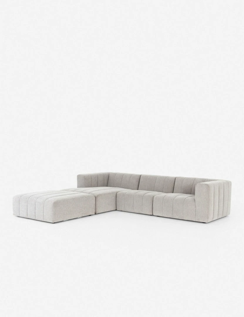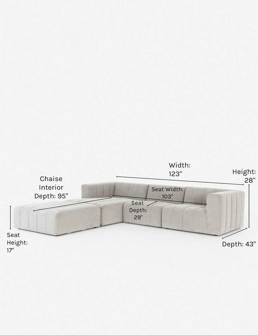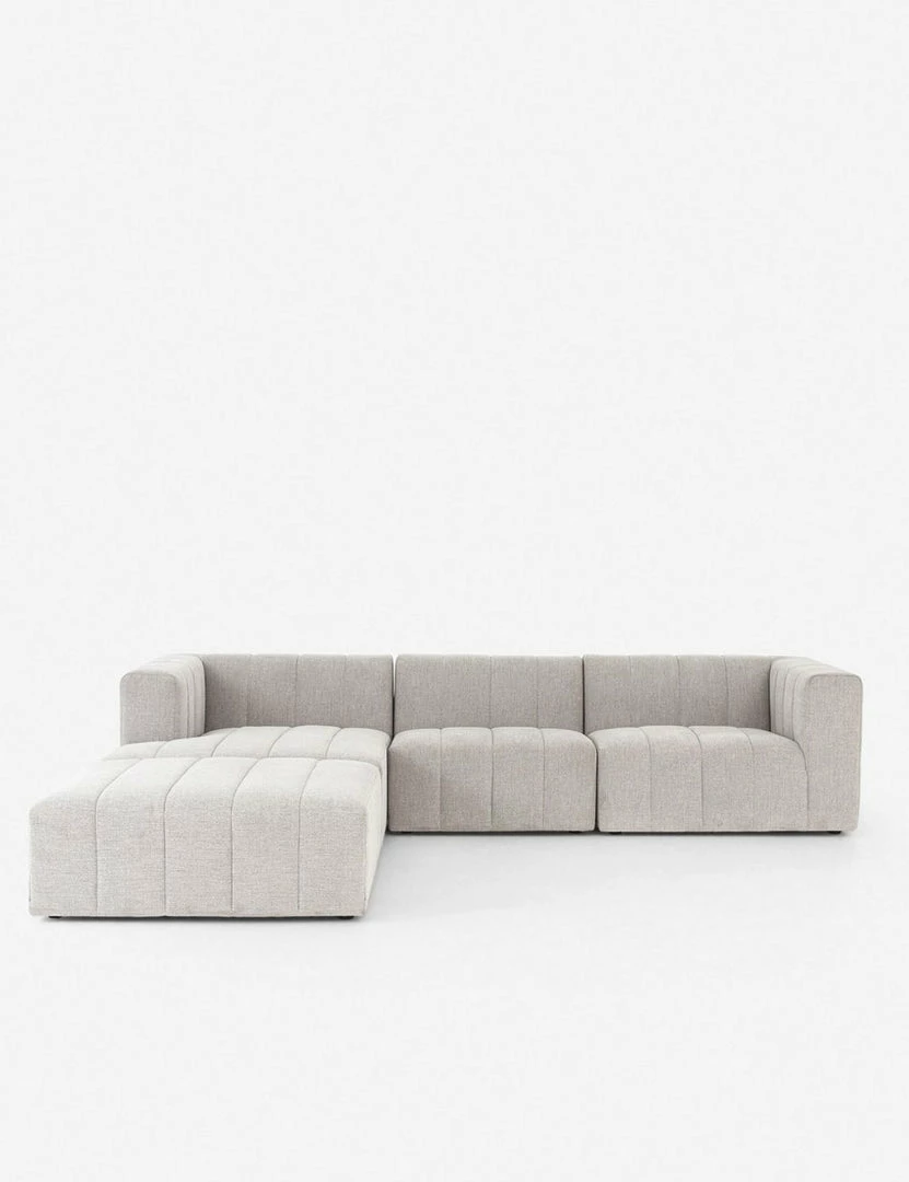 Add a dose of contemporary drama to your living space with this statement-making sectional sofa. A cushion-free, three-piece design with allover vertical channeling and a low back is sure to add that boost of style you’re searching for.