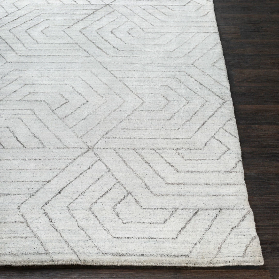 Overlapping hexagons give the neutral color palette in this hand-loomed modern area rug an unexpected twist. Style this geometric rug with darker metal accents for a bold contrasting look or keep things light and bright for a more tonal, contemporary feel.