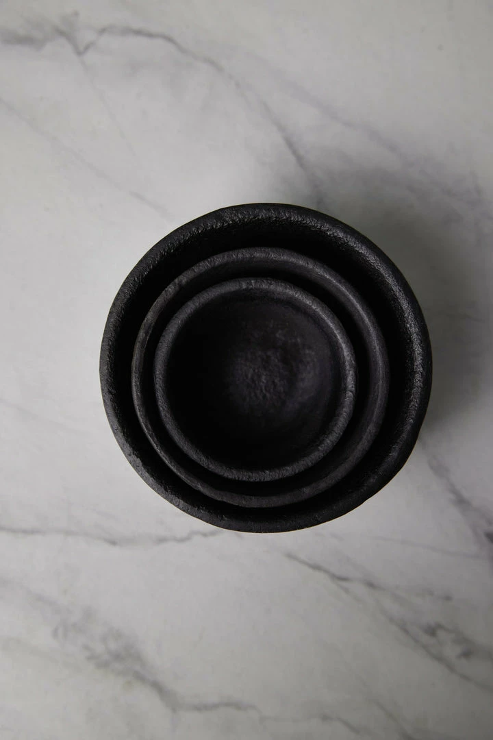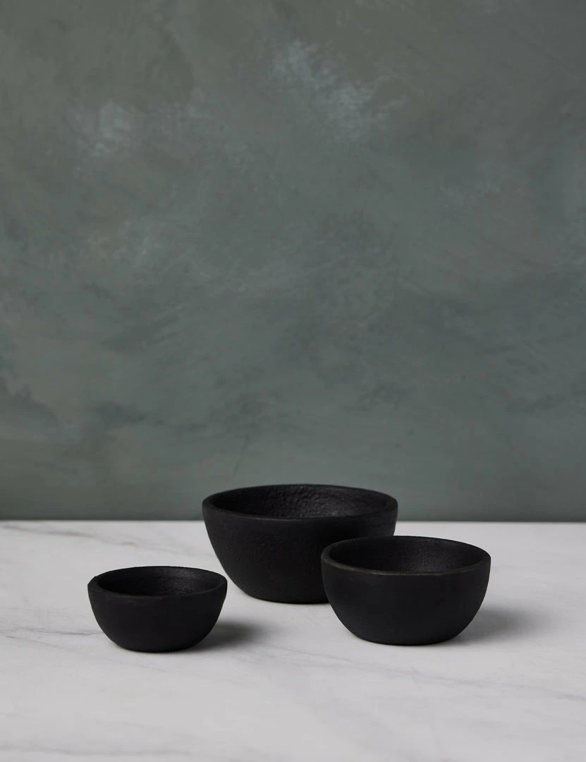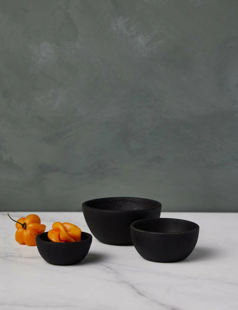 A timeless, cast-iron element for your essential kitchen collection, these versatile bowls are ideal for keeping spices in reach while cooking, laying out dipping sauces, or even purposed as a catchall bowl at a vanity or entryway. Layer these cast iron dishes into your decor for a note of subtle rustic texture.