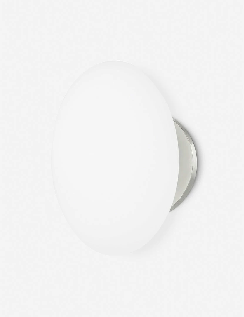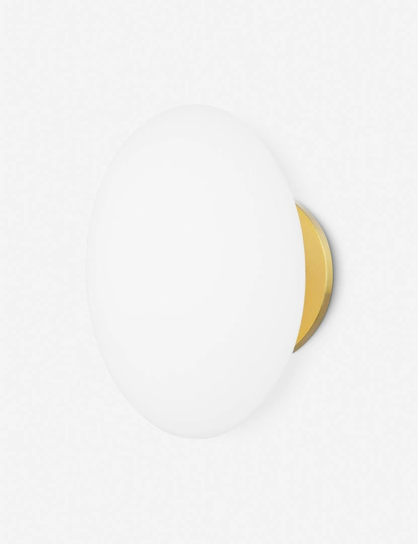 A functional and versatile sconce design that will elevate a space with its soft-lined silhouette that features a cushion-like opal glass shade for warm, even light. Its antique bronze mount is the perfect touch of industrialism for a modern-feeling indoor wall light fixture.