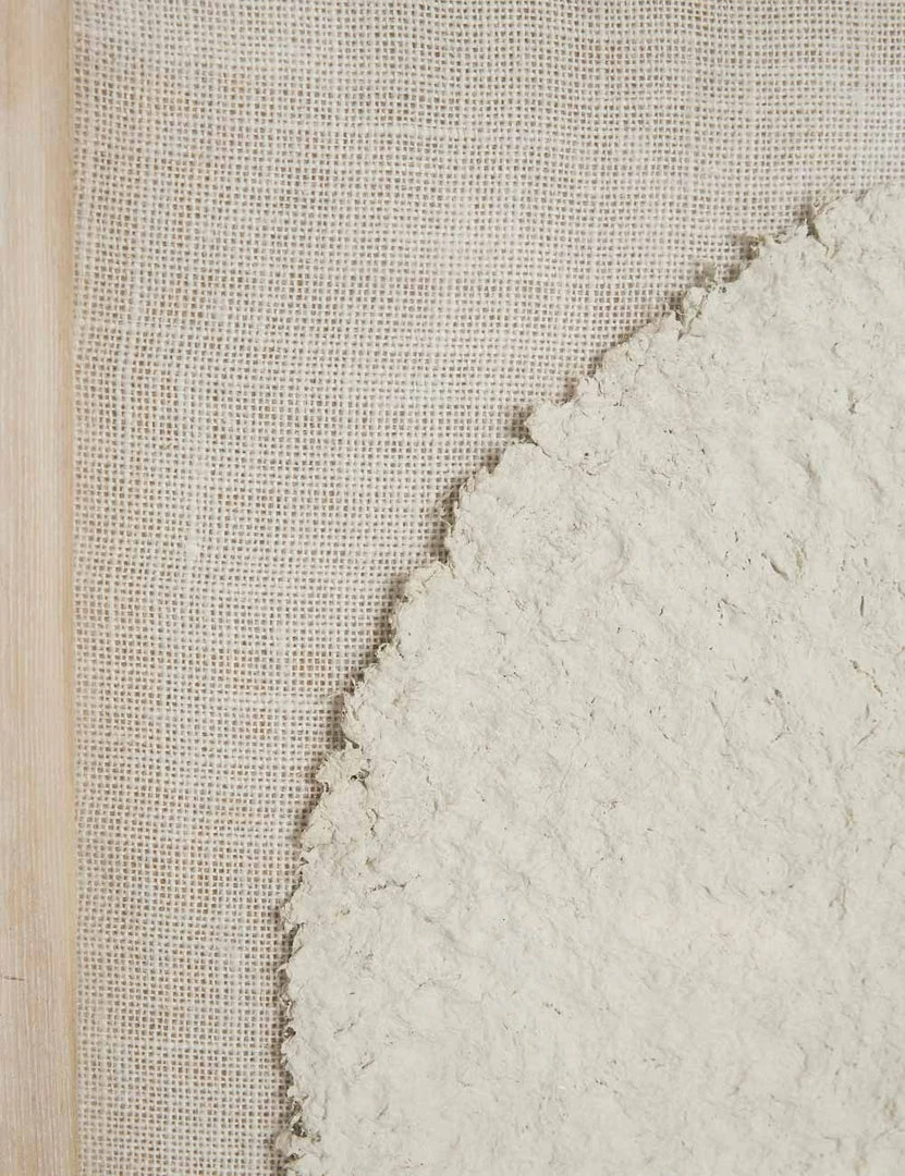 Framed in a beautiful oak and glass case, this shadowbox features a scalloped paper mΓ’chΓ© disc on a jute backdrop. We love mixed media wall art for bringing texture and depth to a room, and in a versatile tonal palette, this piece will fold right into your wall decor.