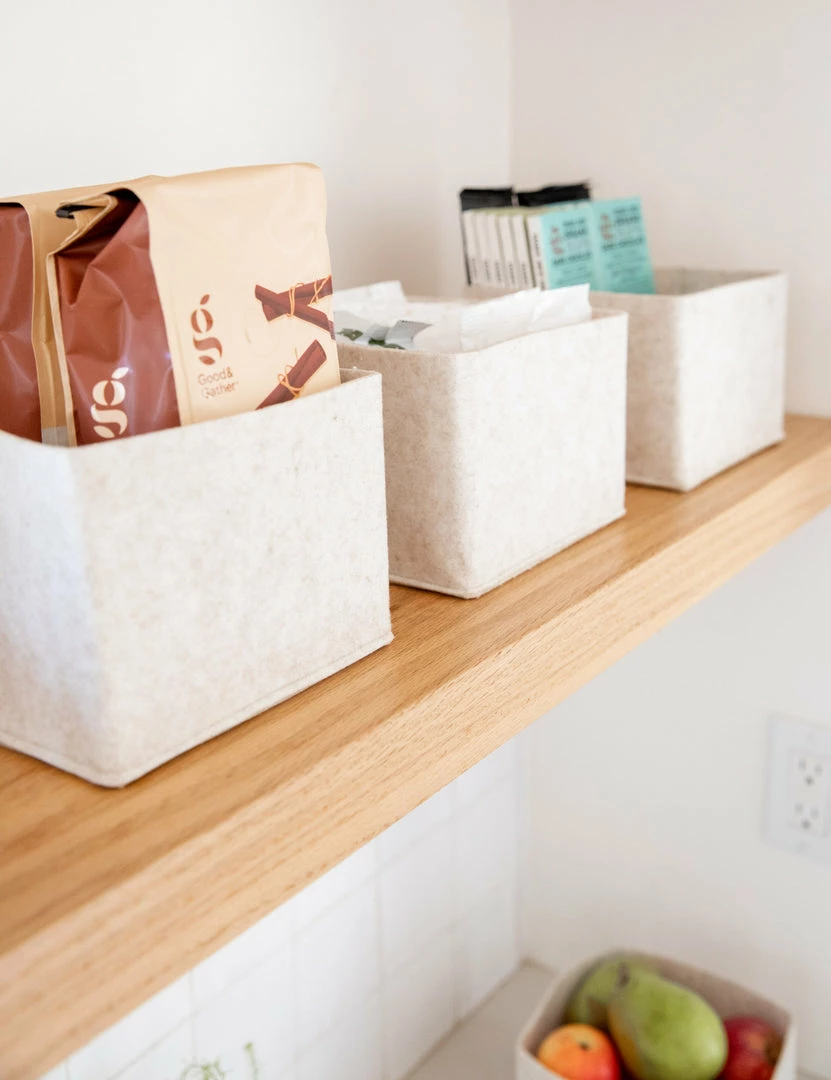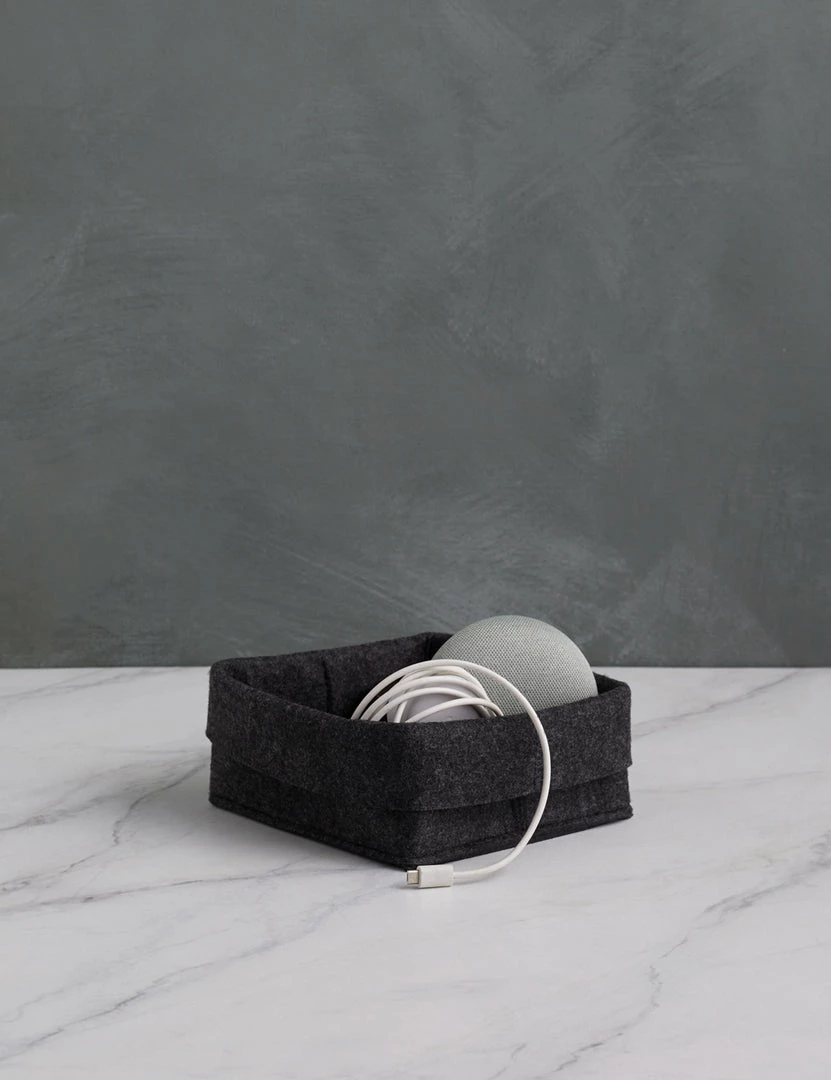 Discover flexible storage appeal with this versatile bin in a style tailored to your space. The dynamic design holds its shape but can fold over for an adjustable height so you can fit a lower profile for easy access or unfold for a taller, sleeker look—plus, the recycled felt fabric can be washed for easy care.