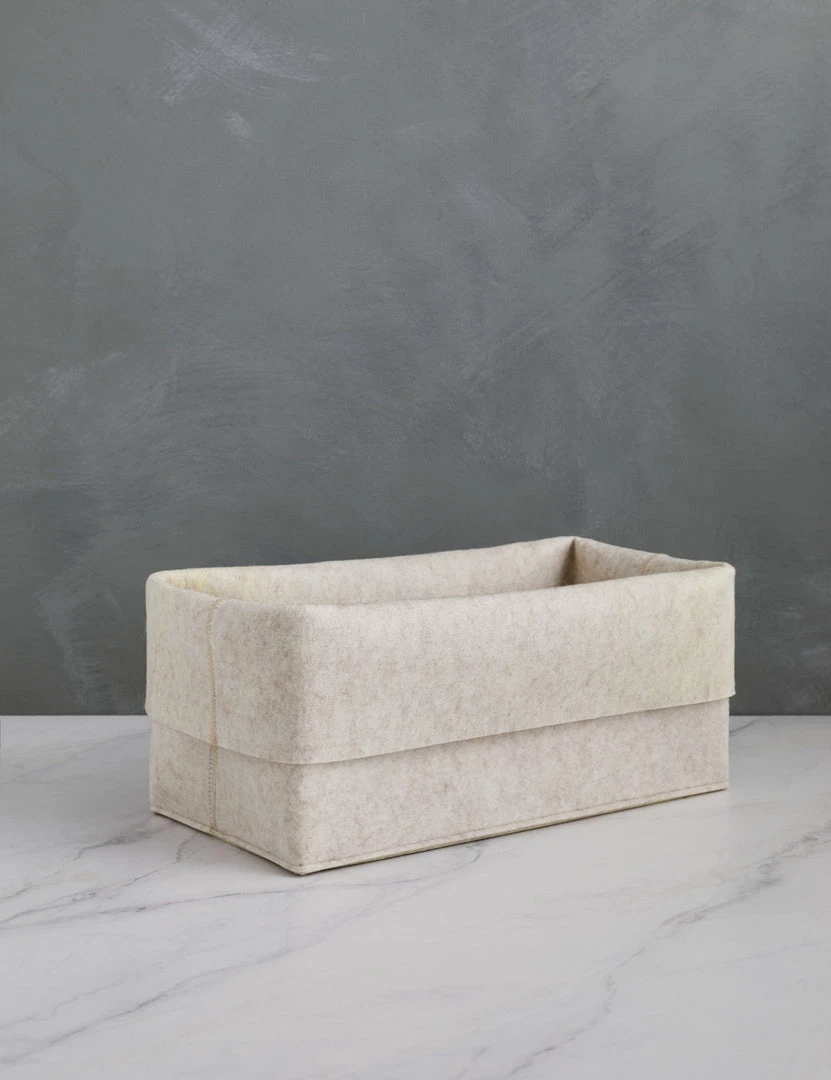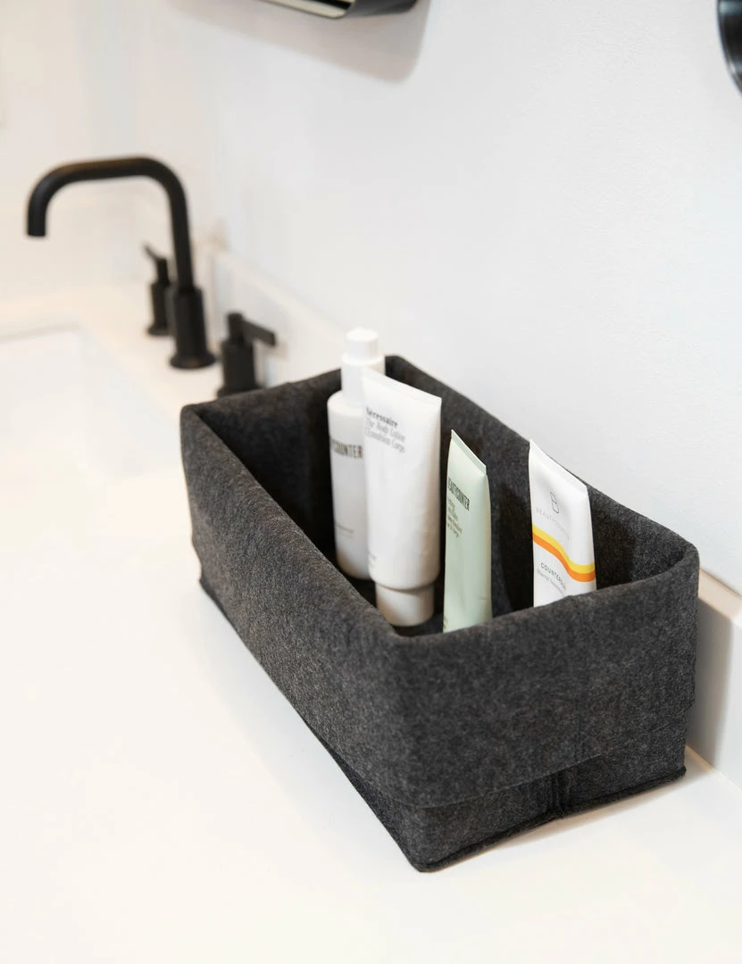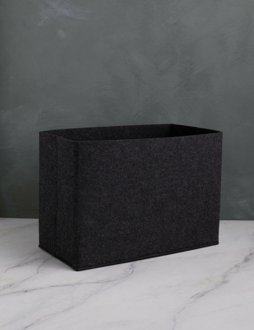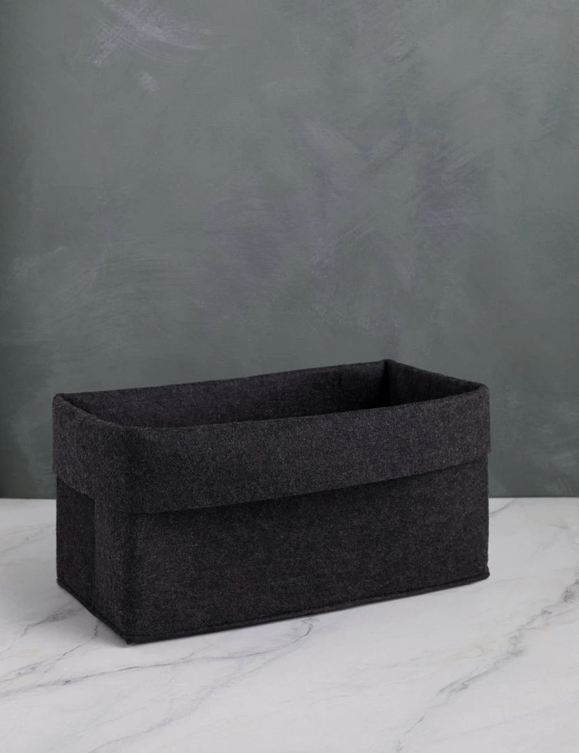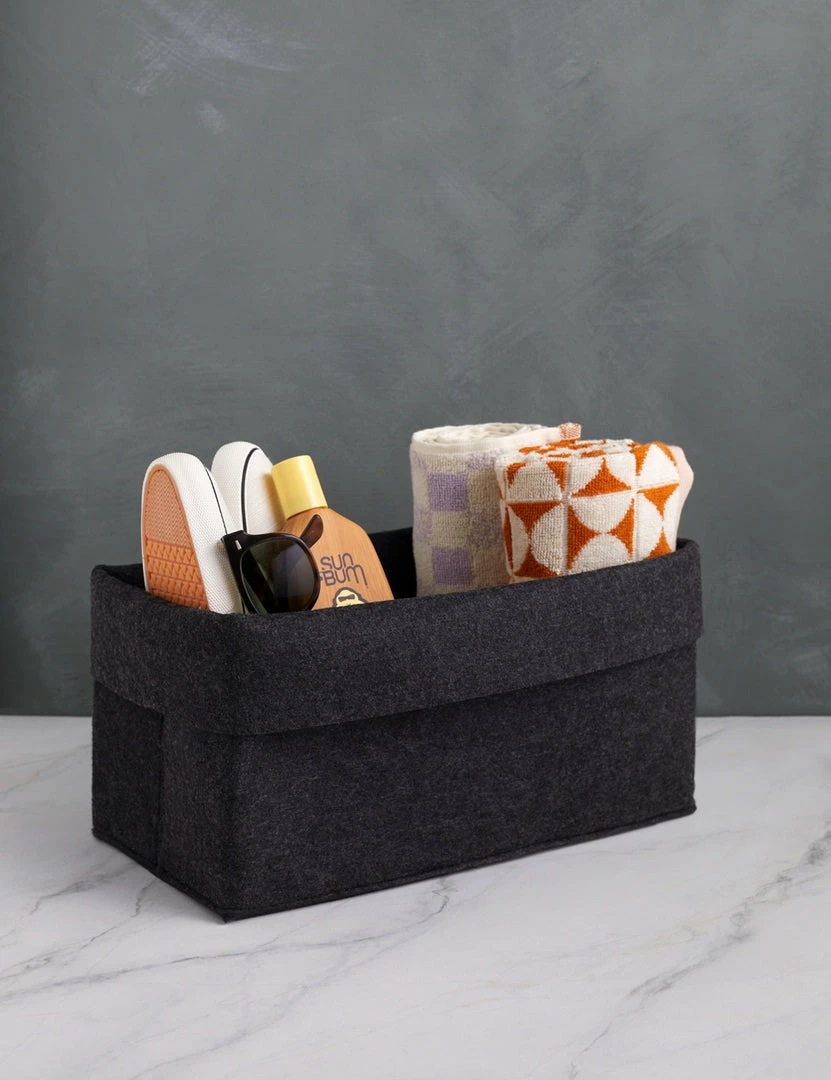Discover flexible storage appeal with this versatile storage bin in a style tailored to your space. The dynamic design holds its shape but can fold over for an adjustable height so you can fit a lower profile for easy access or unfold for a taller, sleeker look—plus, this storage bin is made of felt derived of recycled plastics that can be washed for easy care.