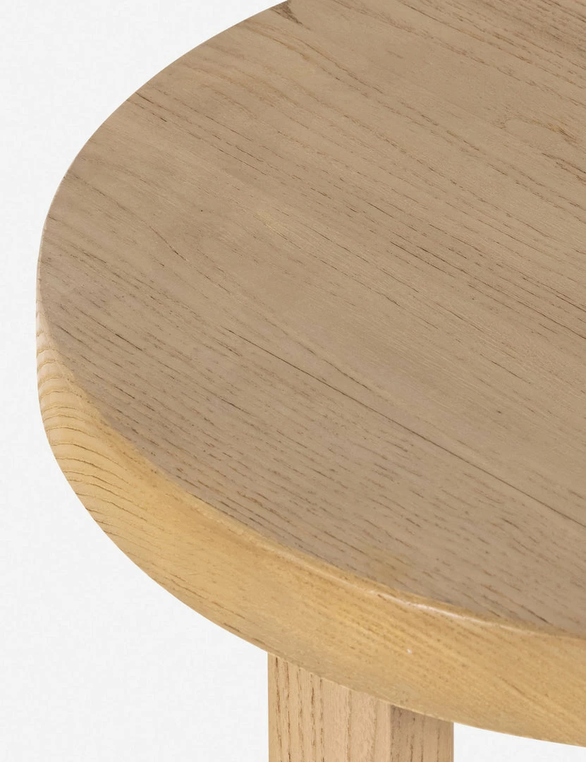 Clean, crisp lines complement the light, natural finish of this elemental side table design. We love this chunky top of this end table design for a grounded aesthetic full of organic textures.