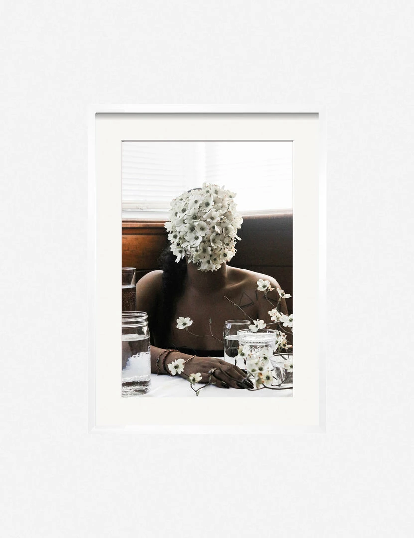 Winston-Salem-based multidisciplinary artist Ashley Johnson uses mixed media to create her staged portraits. A floral veil lays over the subject in this dramatic portrait exploring Southern feminine identity. This wall art print was produced using archival inks to achieve long-lasting, true-to-color richness, outstanding resolution, and an even ink lay for a stunning gallery-quality addition to your art wall decor.