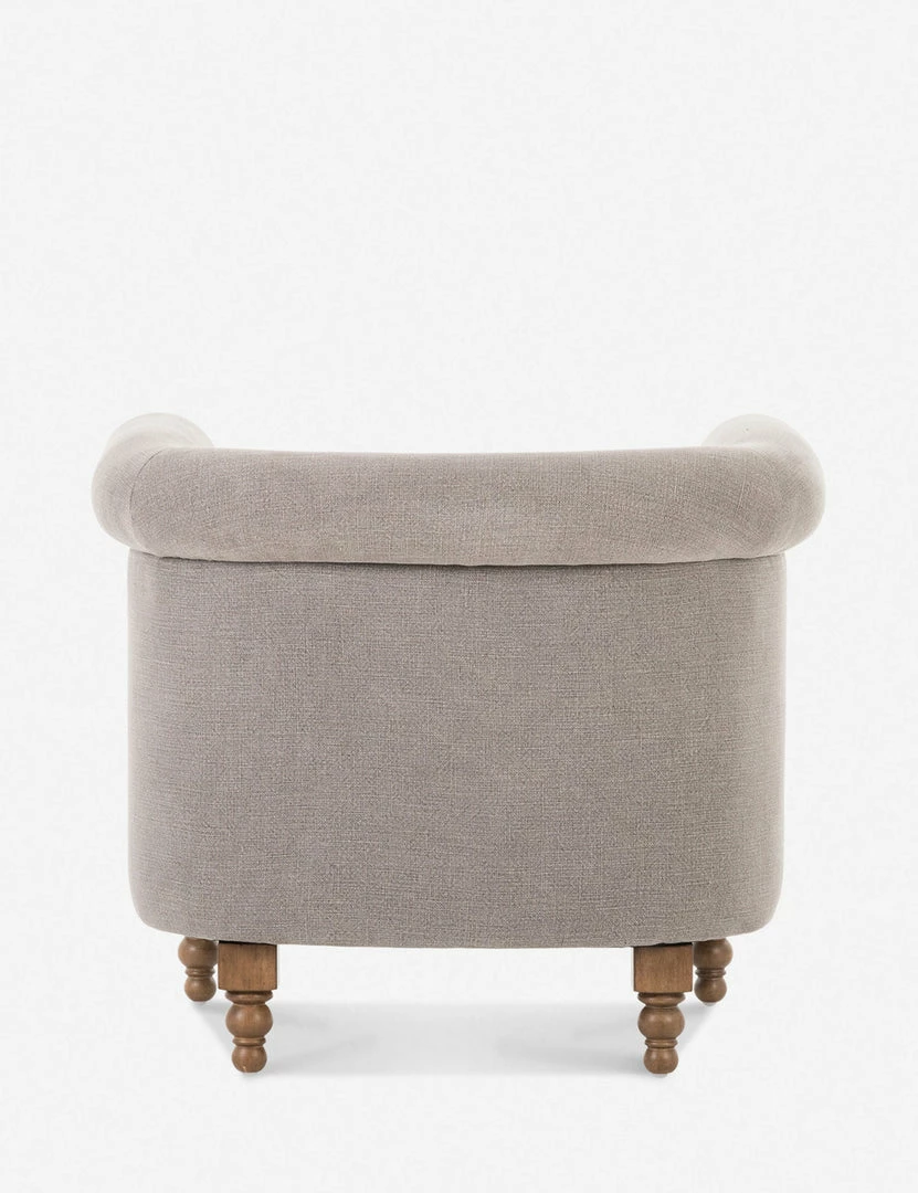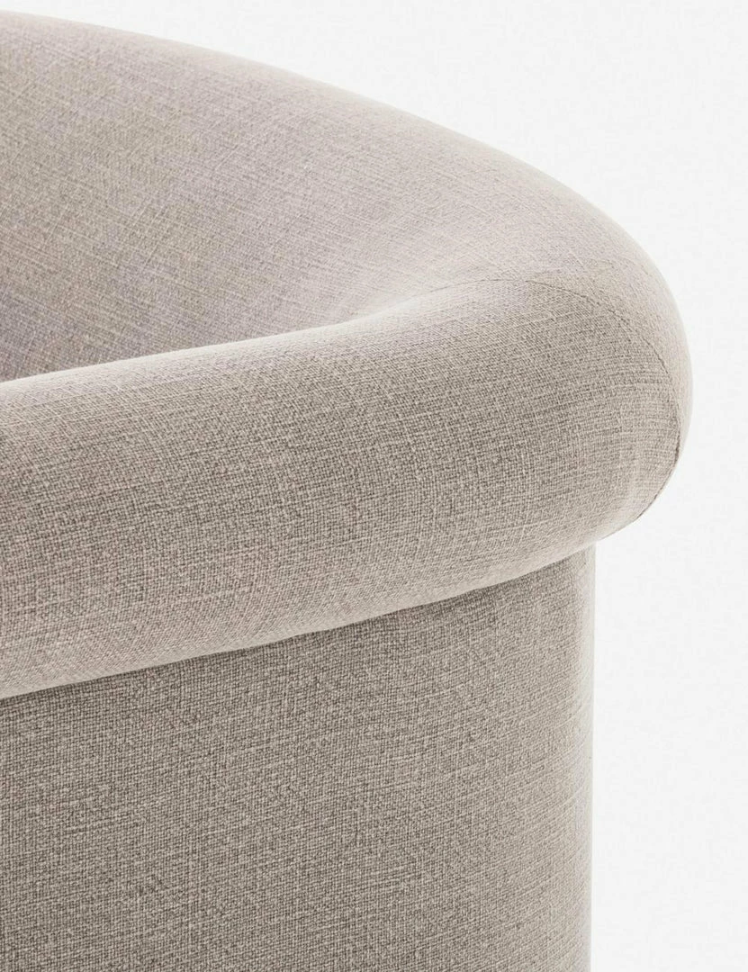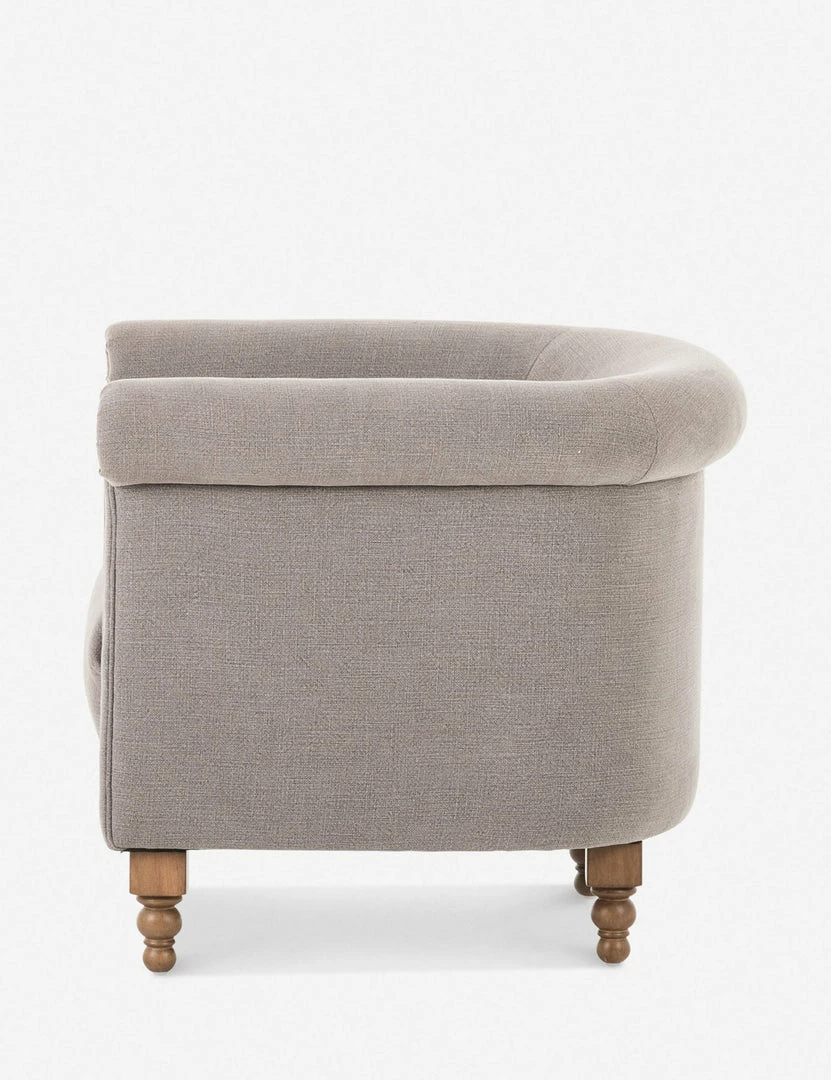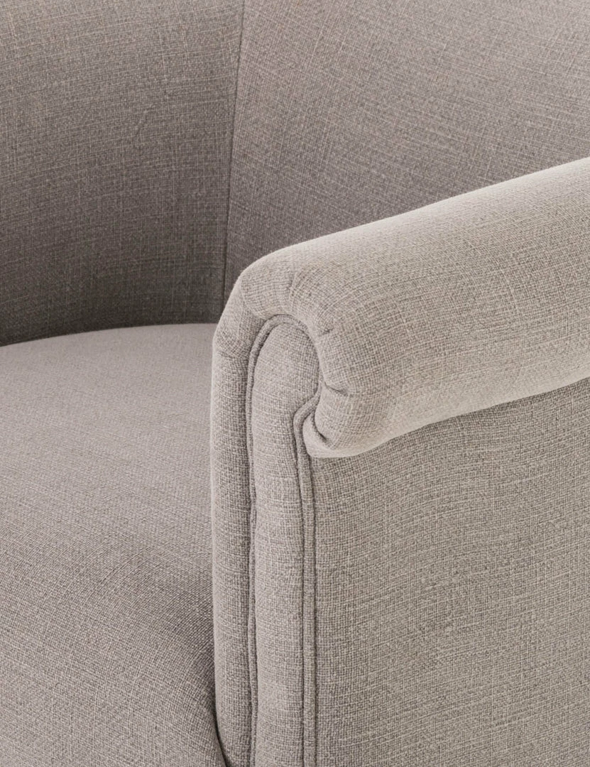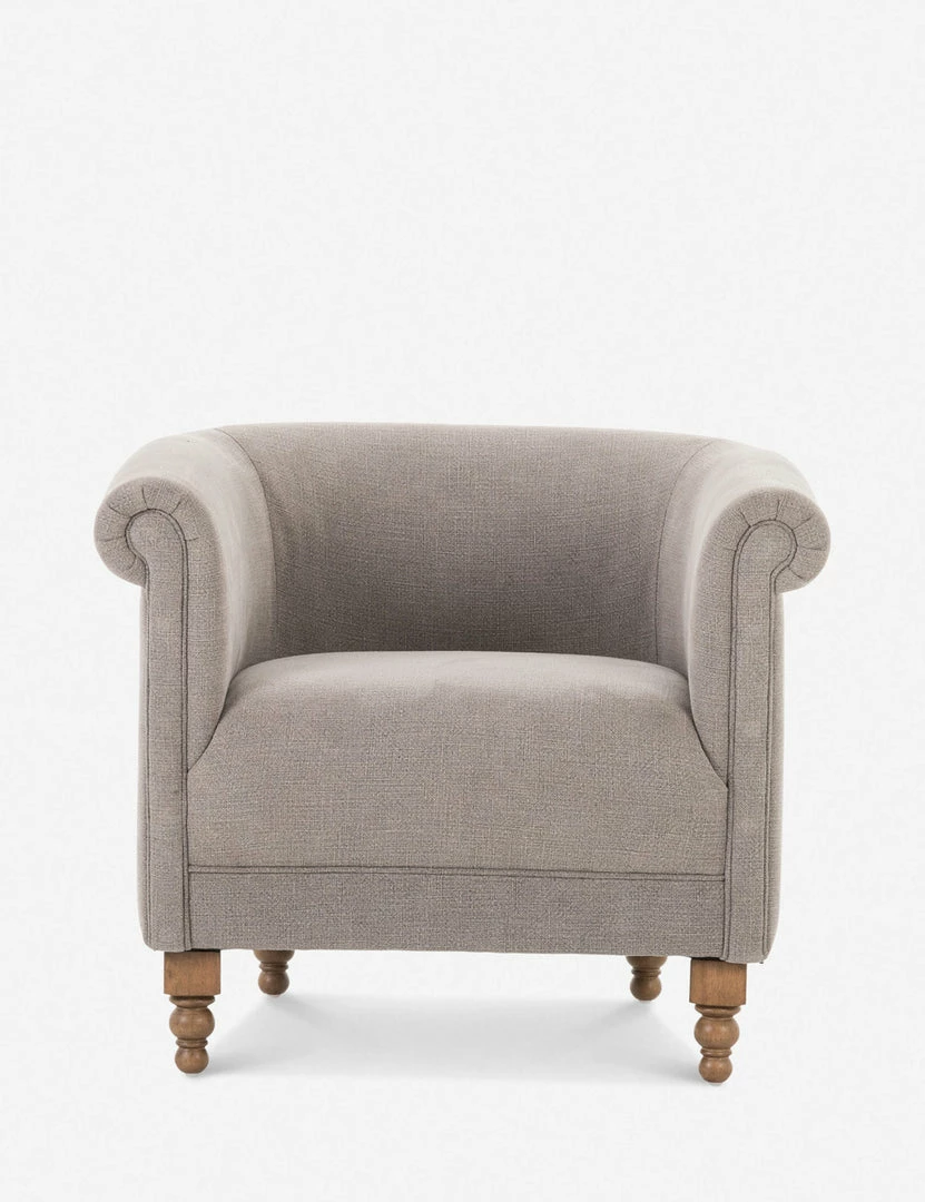 Rolled arms and a plush barrel seat pair timeless style with transitional appeal for this occasional chair. The welt cord trim and ornately styled legs offer a traditional chair design in a grounded neutral tone that can fold seamlessly into your look.