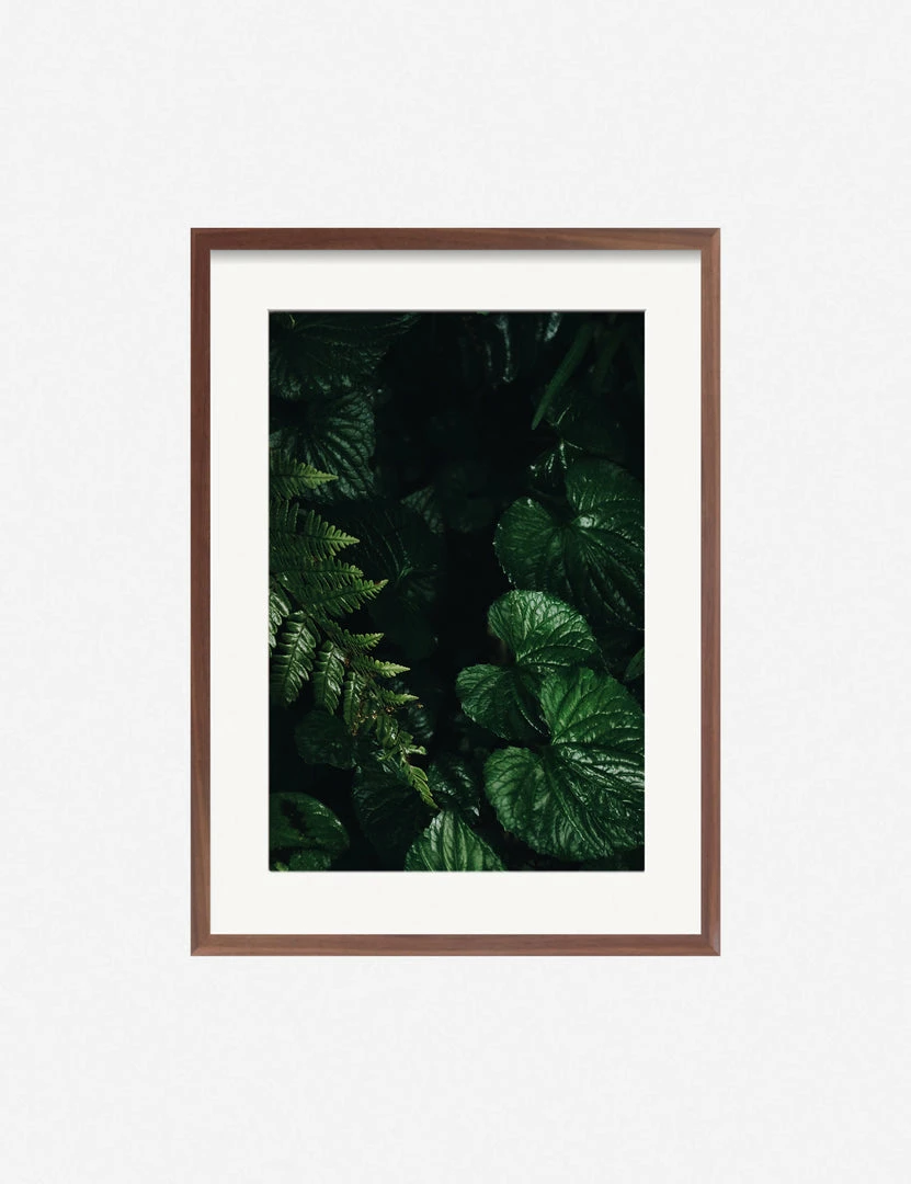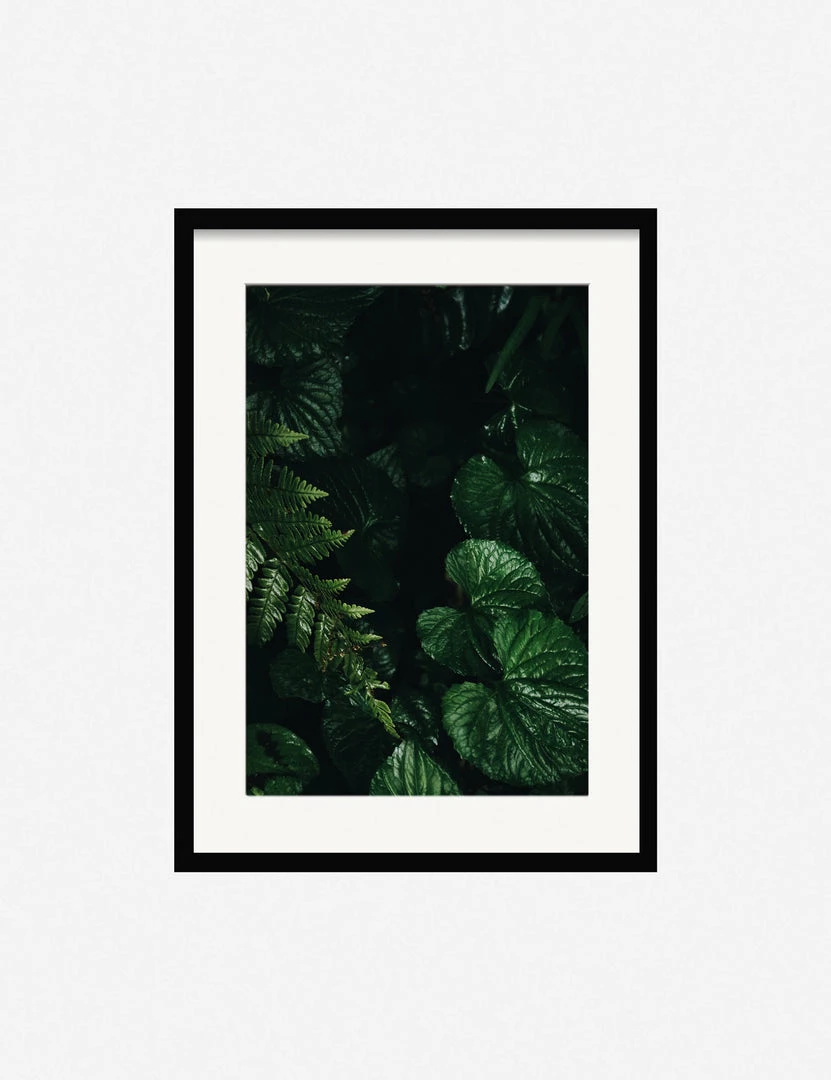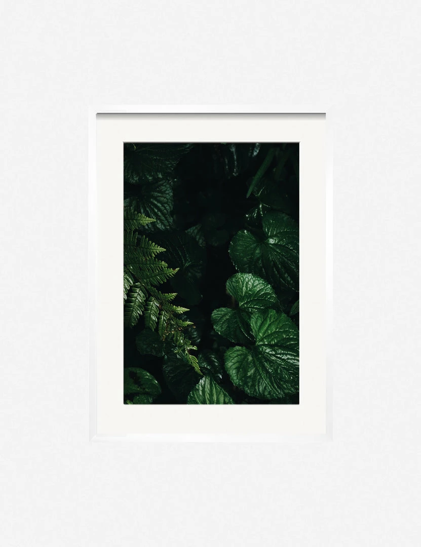 Winston-Salem-based multidisciplinary artist Ashley Johnson uses mixed media to create her staged portraits. Overcast light shadows the perfect symmetry of plant structures, lingering rain droplets, and the still underbrush in this botanical series. Lush verdant layers emerge toward the foreground. This wall art print was produced using archival inks to achieve long-lasting, true-to-color richness, outstanding resolution, and an even ink lay for a stunning gallery-quality addition to your art wall decor.
