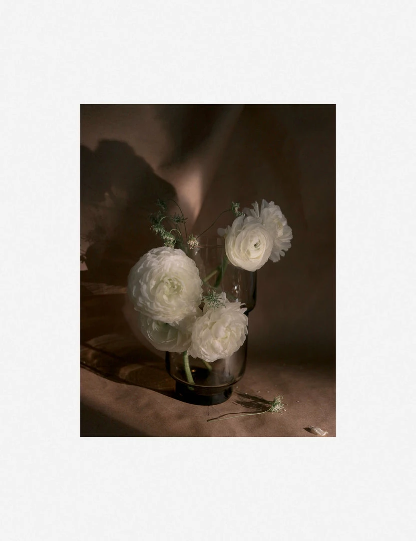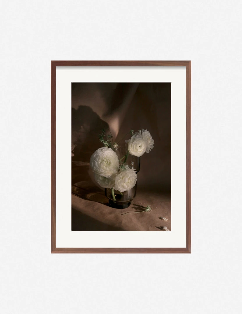 Winston-Salem-based multidisciplinary artist Ashley Johnson uses mixed media to create her staged portraits. Delicate blooms draw the eye into this still life from a series taken in the deep, stark shadows and warmth of the sunset, marked by strewn petals and vintage tinted glass. This wall art print was produced using archival inks to achieve long-lasting, true-to-color richness, outstanding resolution, and an even ink lay for a stunning gallery-quality addition to your art wall decor.