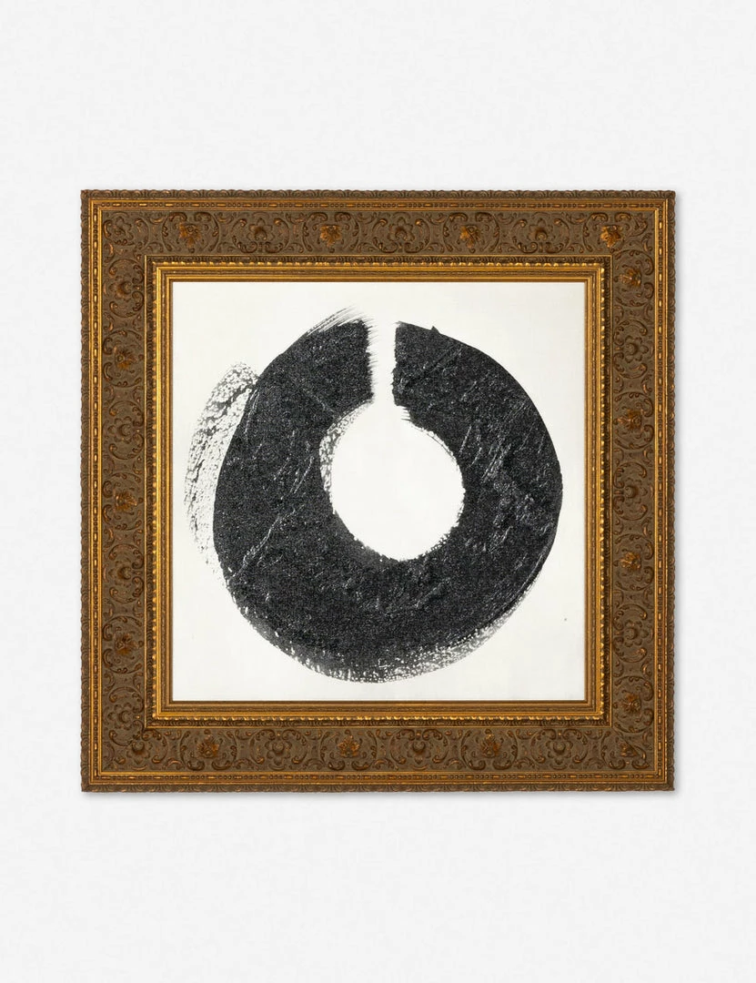 In this striking wall art series, a minimalist composition creates textural allure against a matte canvas. The ornate gold frame underscores the distinctive character of the piece, offering a signature element for richly collected wall decor.