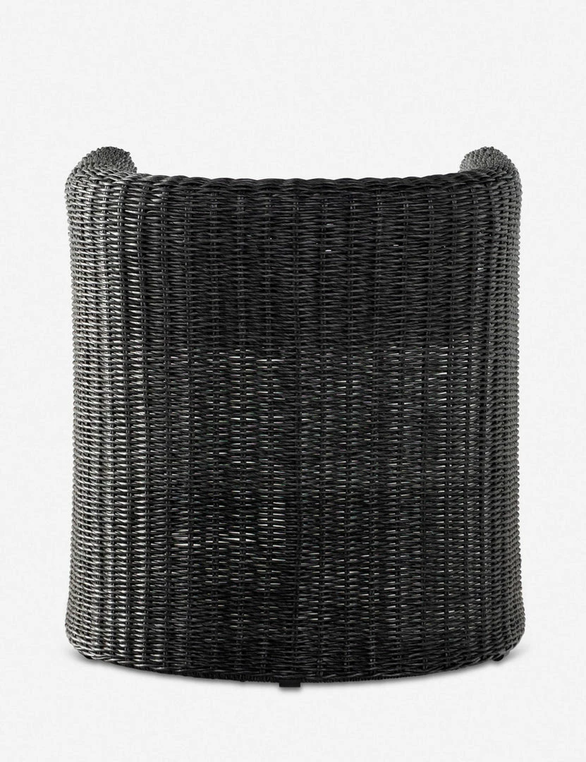With a nod to retro style, this curvy wicker dining chair is the ultimate element for al fresco dining. Fluid design, all-weather wicker, and a performance upholstered cushion create a versatile dining seat, fit for the most refined aesthetics whether in a transitional space or patio set.