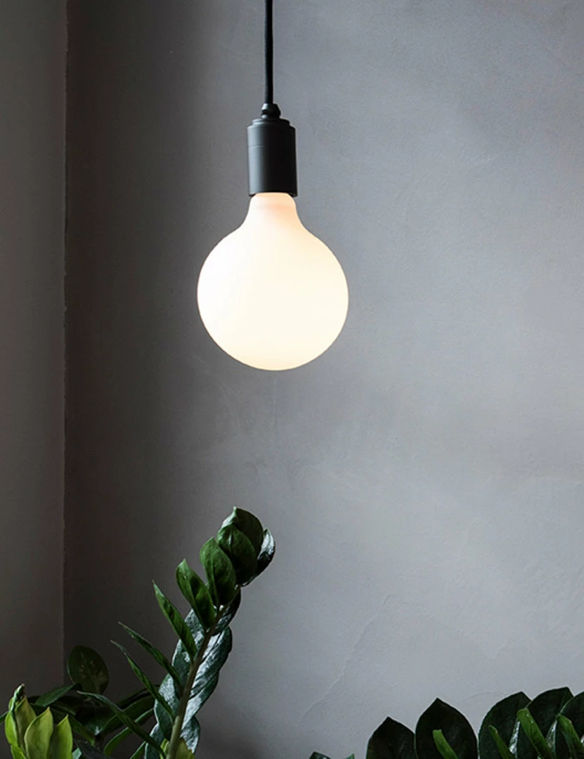 Featuring a white matte glass finish, the Tala Porcelain III bulb is the largest in the Porcelain collection and has a simple and clean design that works best for floor and table lamps. This bulb works beautifully suspended in a pendant or vertically in a table lamp.