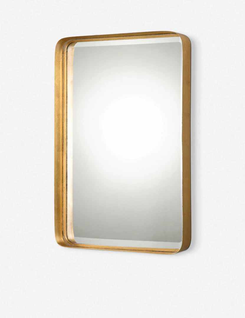 This elongated mirror is framed in an elegant metal, lightly brushed with gold leaf. For a feminine touch, add our Tayla Mirror to your entry or bedroom.