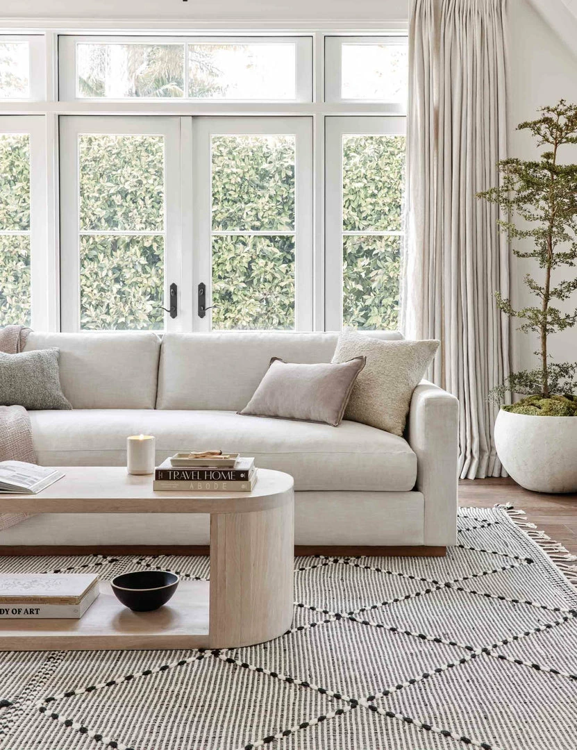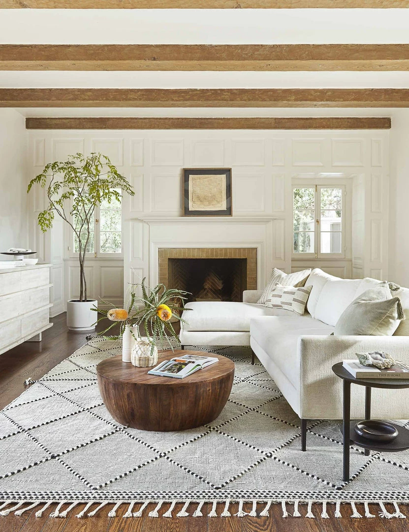 Inspired by traditional Moroccan flatweaves, our durable Taza Rug is constructed from high quality materials, and features a classic geometric design and subtle fringed details. It pairs well with minimalist and bohemian decor in neutral tones.