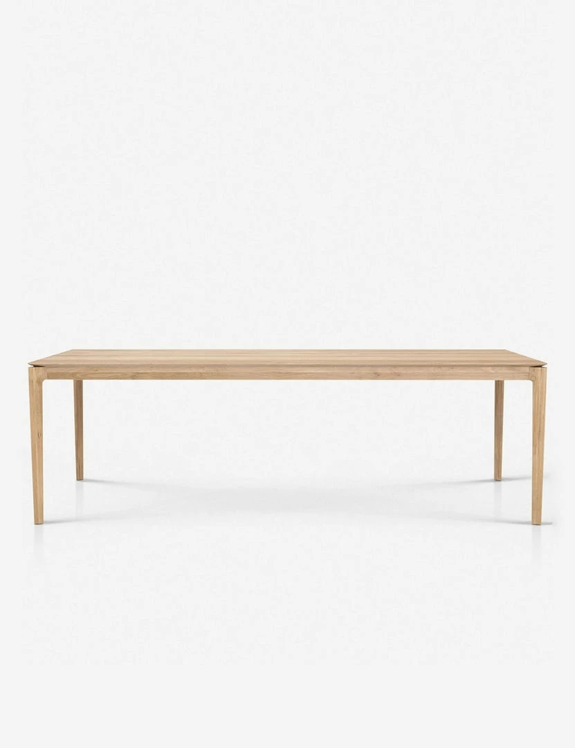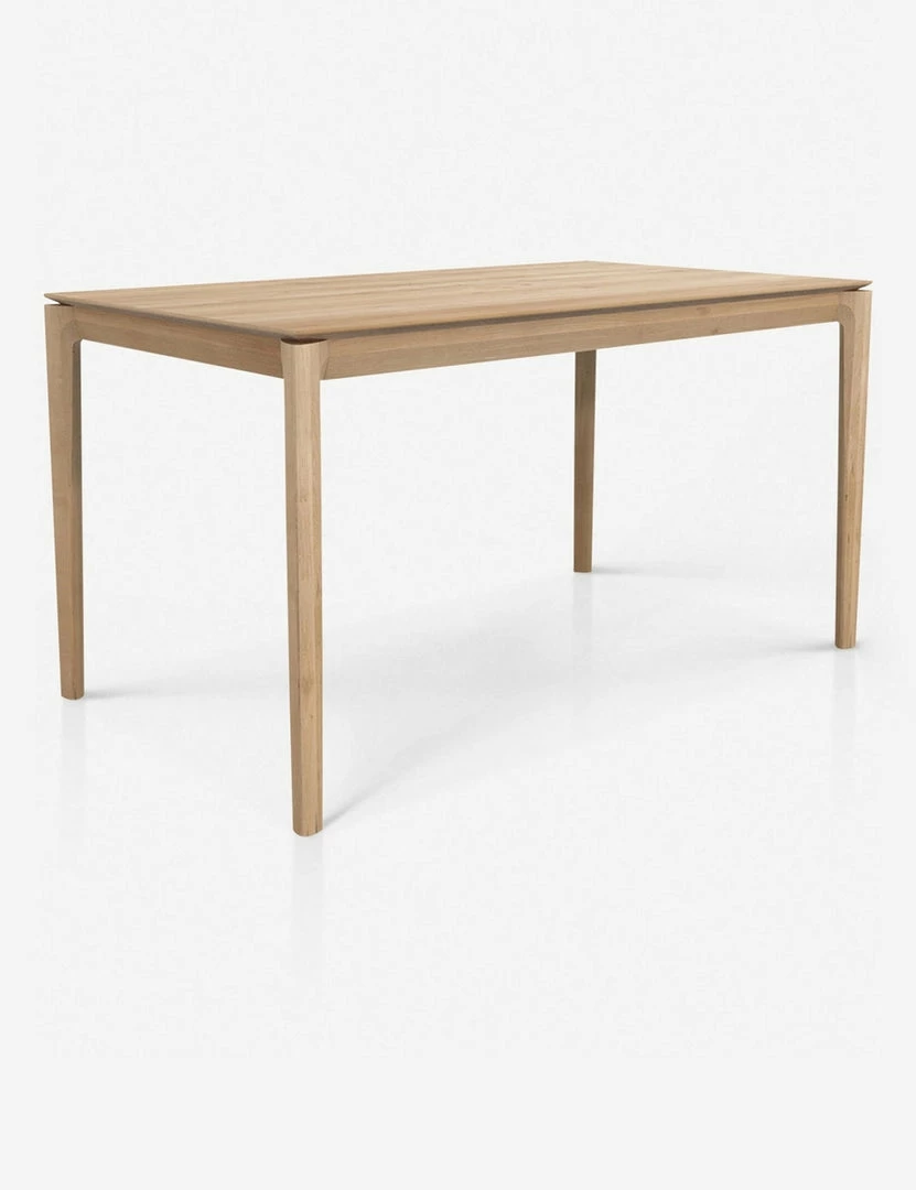 Simple design creates a standout look for this ethically sourced solid oak dining table with an oiled finish. Beveled edges and slightly tapered legs give it timelessly cool mid-century feel.