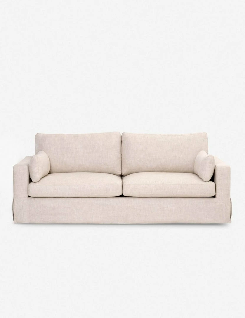 Made from 100% French Linen, our Tova Sofa is incredibly soft and gives a cozy, casual feel to a space. Blend in neutral colors and pretty woven pieces for a light and airy living room look.
