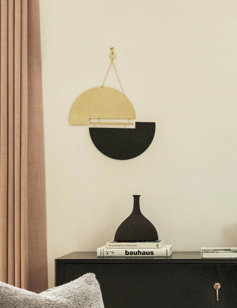 Circle & Line is an Austin-based design studio that produces elegant, unique decorative accents and understands the role these artful objects play in elevating the look of a space. Designed with both physical and visual balance in mind, the black patina finish of this wall art design will set your room off with visual impact and a poised contrast. Style as a unique, modern element in a gallery art wall—set off by natural artisanal textures.