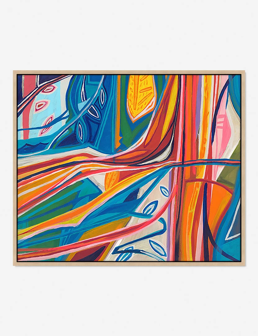 This wall art by Dylan Grey features abstract botanical forms in a colorful array of lines and movement. The raw energy that courses through this piece will bring a lively presence into a gallery art wall or bold focal point to a home office or social living space. This original work includes the artist’s signature and a certificate of authenticity.