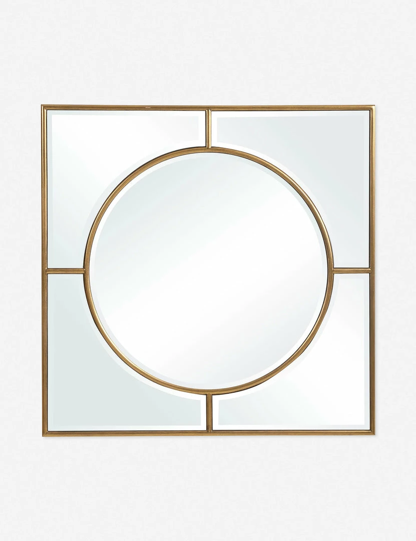 Elemental lines balance a traditional style in this square mirror featuring an inset circular design with beveled edges. Style this decorative wall mirror above a console or entryway table to bring a polished touch to your transitional aesthetic.