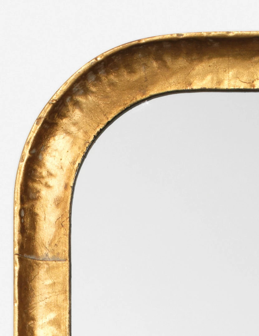 Combining classic and contemporary elements, this chic rectangular mirror is the perfect addition to bedrooms or entryways. This narrow-framed mirror features rounded corners and a concave design in a textural gold-leaf finish.