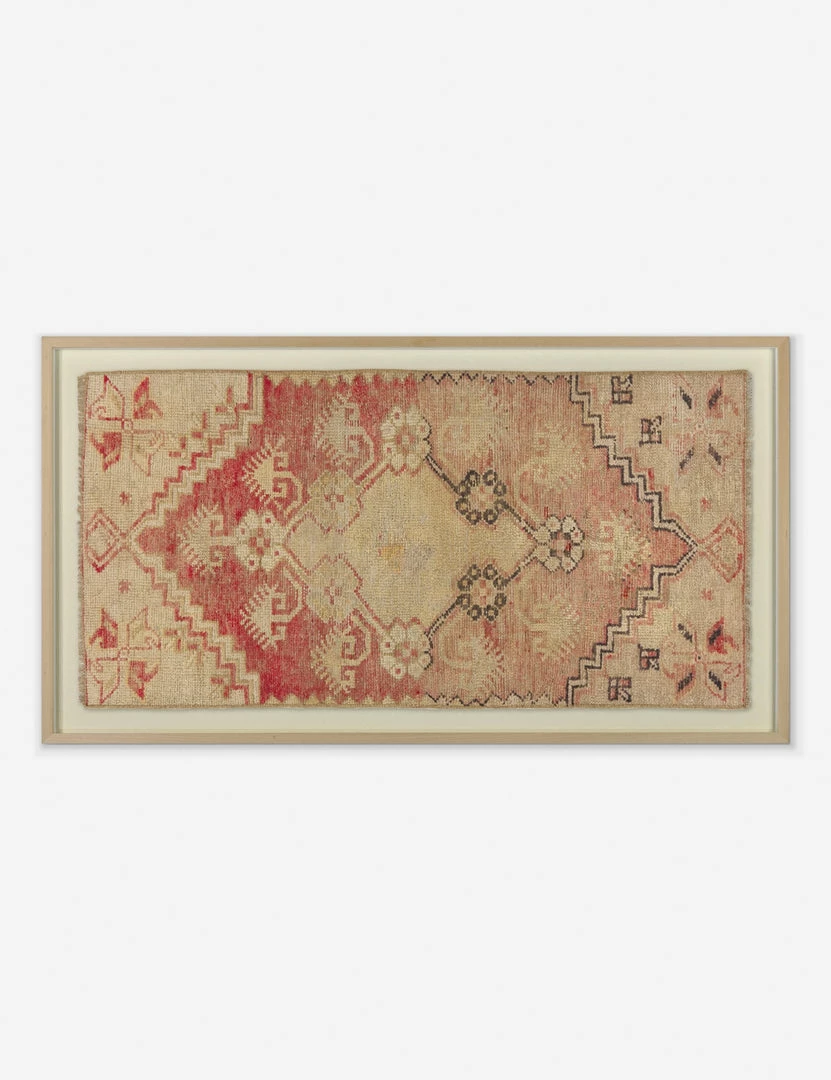 Instantly transform your walls with this limited-edition collection of framed textile wall art. Sourced from a small batch of vintage rugs, this textural and one-of-a-kind piece adds warmth, rich color, and stunning detail—making it an ideal focal point in your entry or living room above a console. Finished with a raw wood frame and simple mat to add a touch of polish to this artwork for your wall.