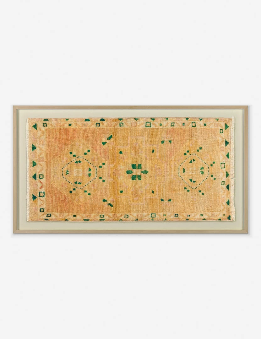 Instantly transform your walls with this limited-edition collection of framed textile wall art. Sourced from a small batch of vintage rugs, this textural and one-of-a-kind piece adds warmth, rich color, and stunning detail—making it an ideal focal point in your entry or living room above a console. Finished with a raw wood frame and simple mat to add a touch of polish to this artwork for your wall.