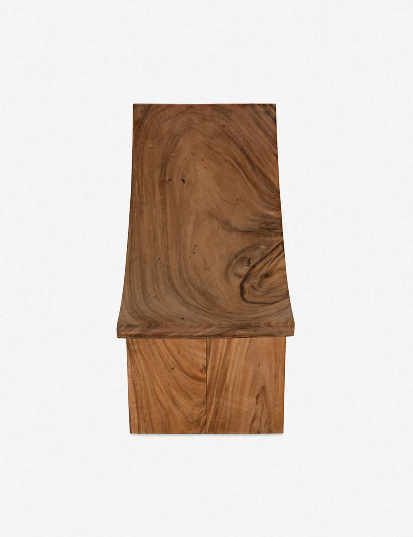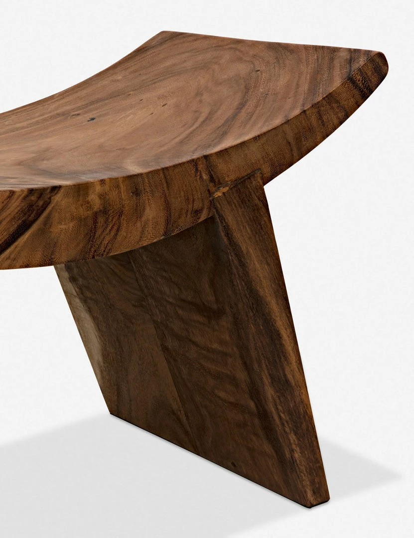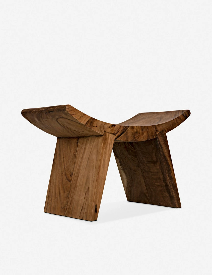 A curved seat is handcrafted from munggur wood and fitted with two splayed legs setting off this stool’s artisan quality with a rich natural character. We love how the pared-down design and warm finish highlight this beautiful wood’s organic knots and grain to bring a grounded accent to your space.