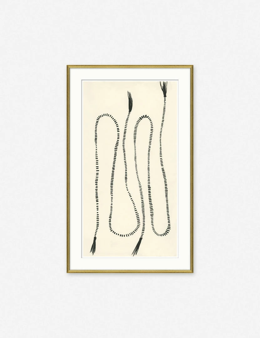 A bold and visually stunning piece of wall artwork instantly makes your space feel more complete. This framed wall art features undulating cords and tassels in a woodblock print style, perfect for adding a graphic element to your home.