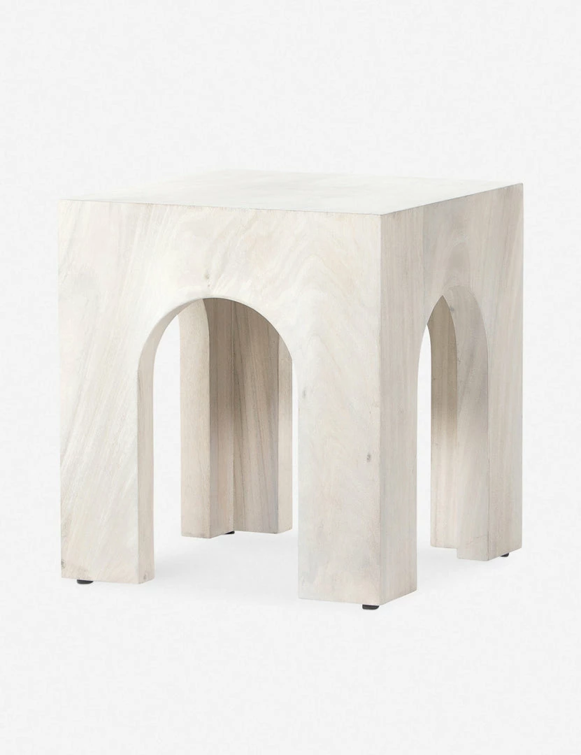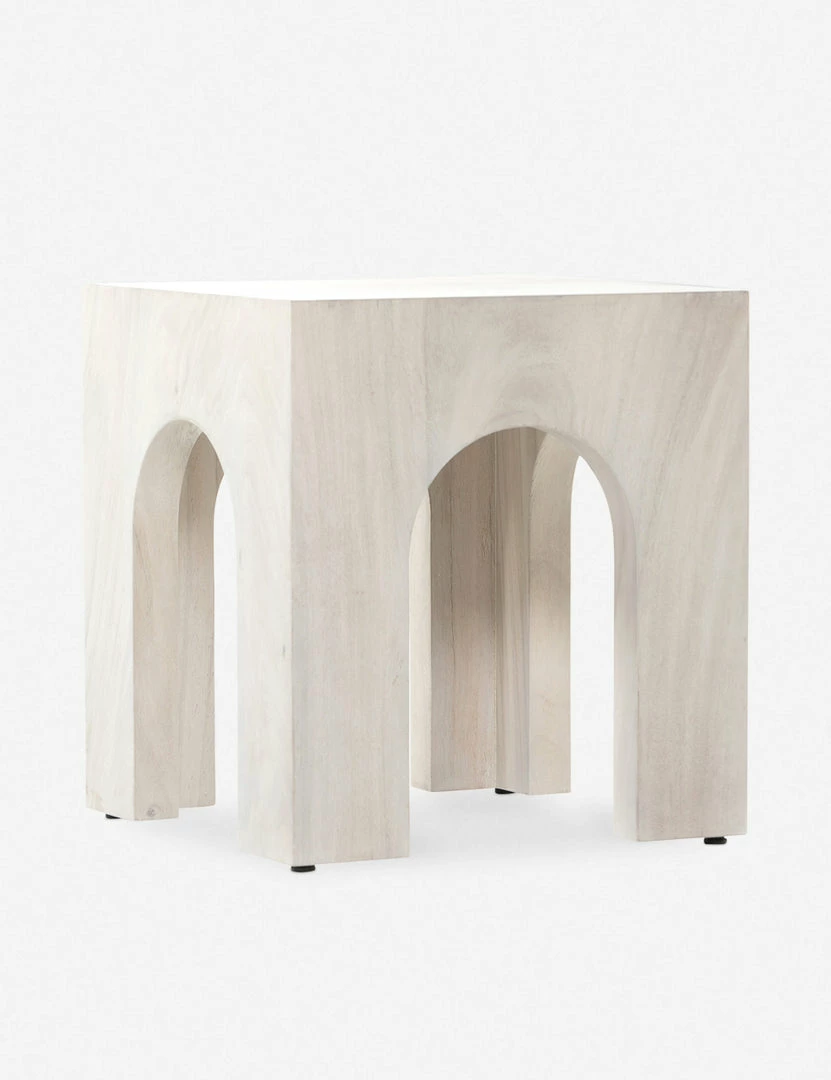Clean lines and crisp arches create architectural appeal from every angle in the Xian Side Table. Fashioned from bleached guanacaste, this sculptural design offers a naturally elevating tone as a bedside or end table.