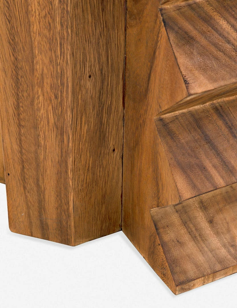 A jagged silhouette in warm teak brings a stylish edge with plenty of organic appeal to this unique end table. With its striking design and low profile, this signature wooden piece can be styled as a low side table or stool for a dynamic addition to your family room or lounge.